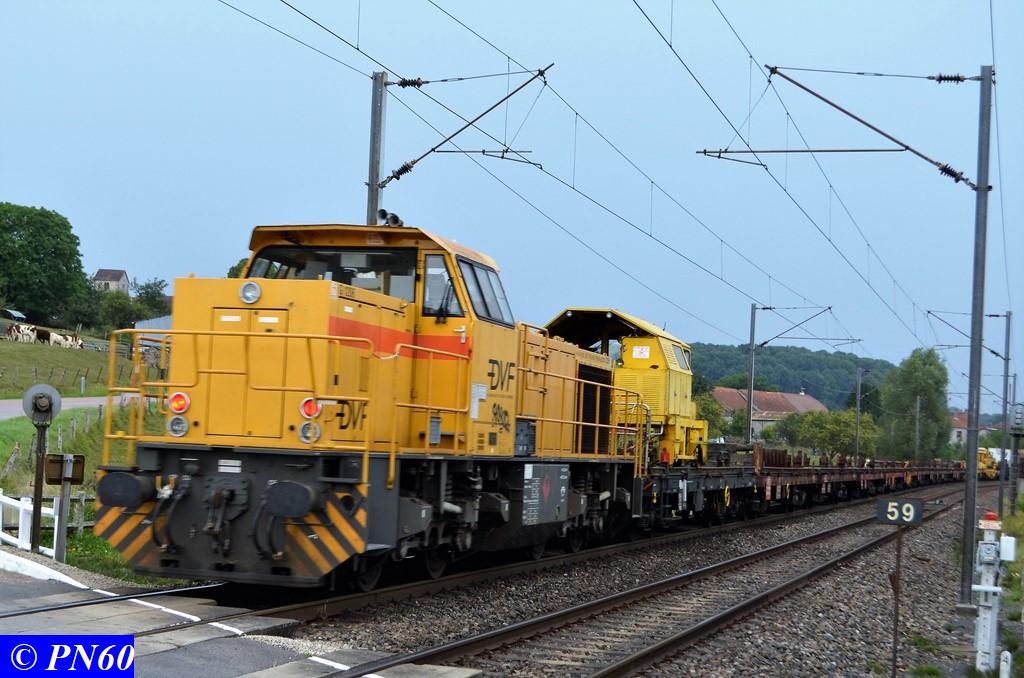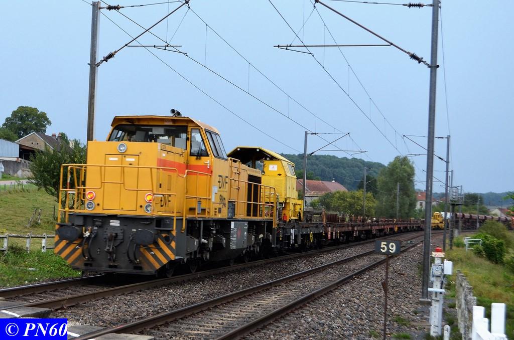 Suite du train photographié le 30 août 2017 au PN 59 d'Hacourt, tracté cette fois ci par la G 1206 COLAS RAIL numéro 92 87 001 766-0 F-VL.