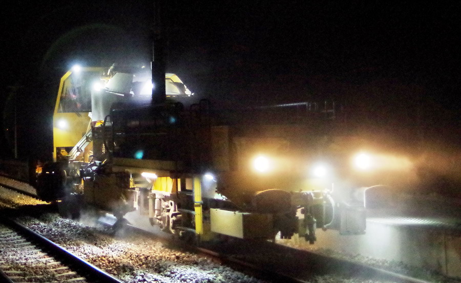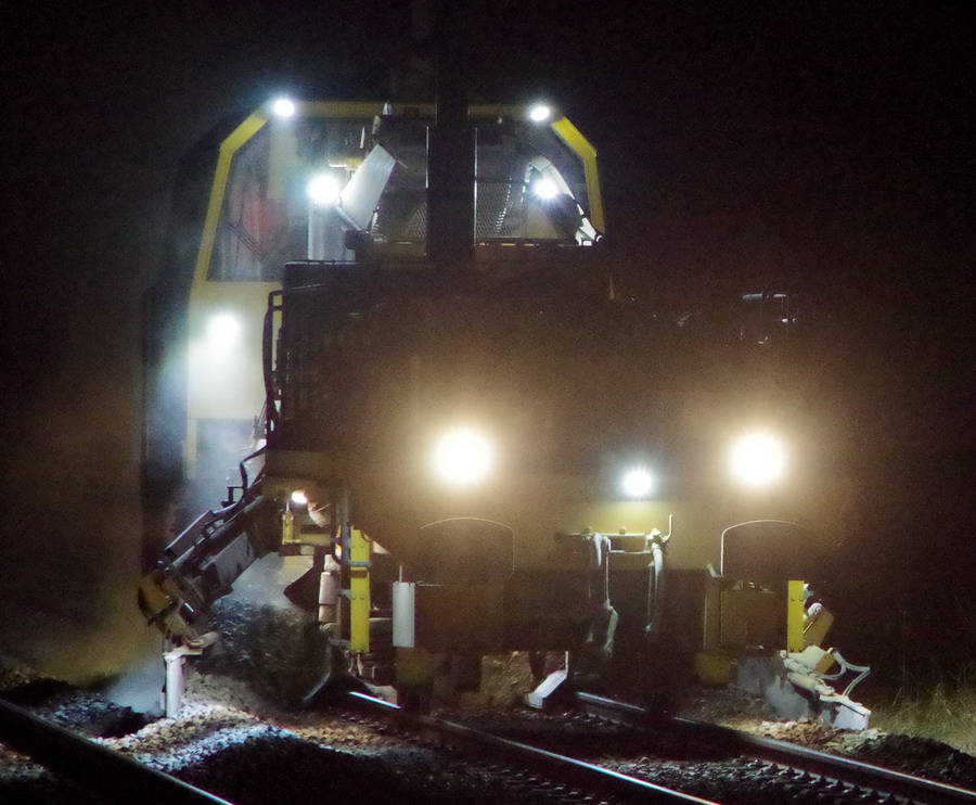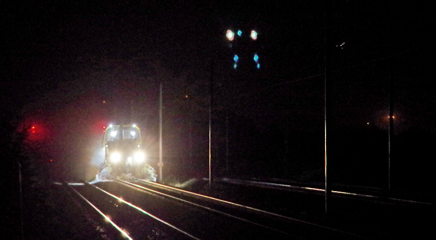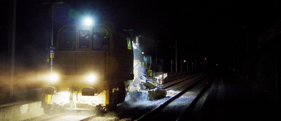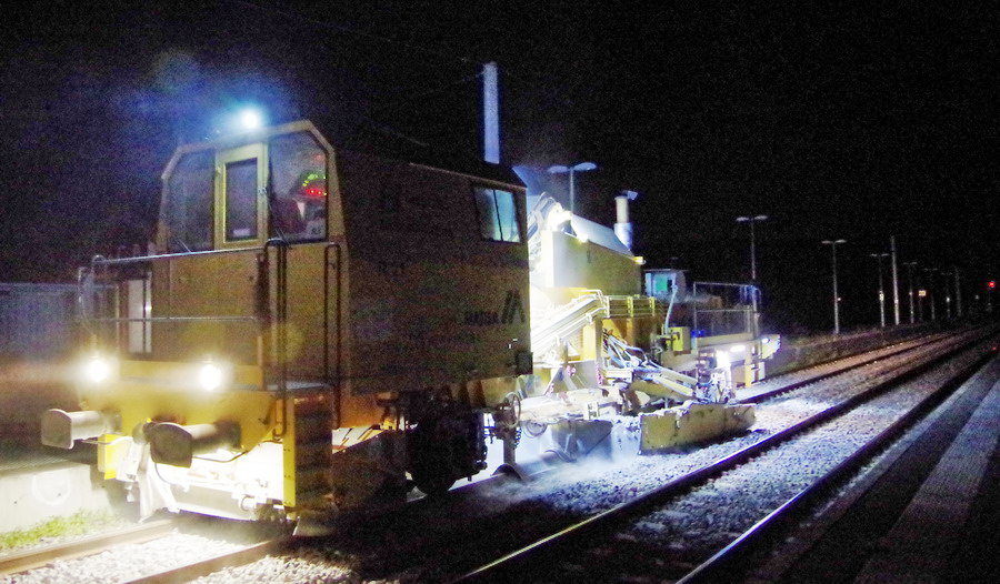travaux de nuit entre le 26 et 27 juillet 2018 avec la Régaleuse R21 - 99 87 9 125 526-3 de Meccoli en gare de Mennessis (02) PK 74,501