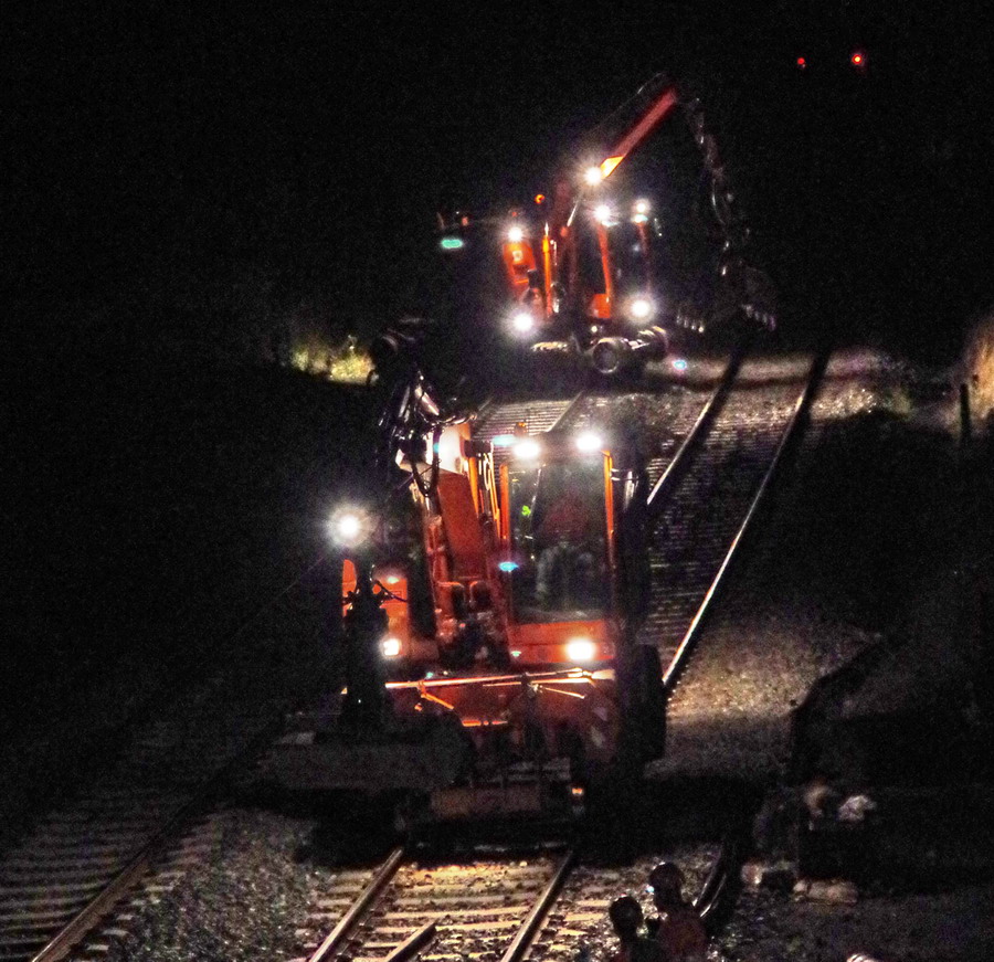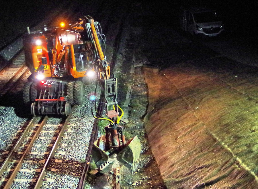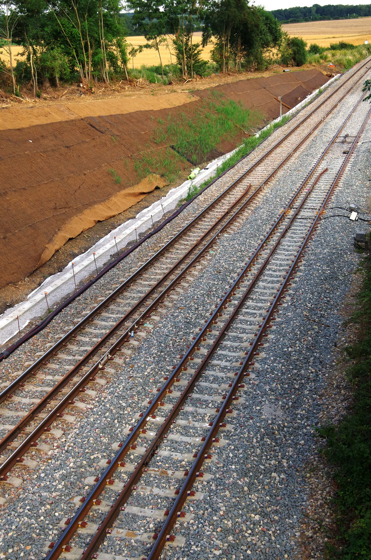 pour voir l'ensemble des travaux fait la nuit passée avec l'installation des caniveaux entre la voie 2 et le talus
