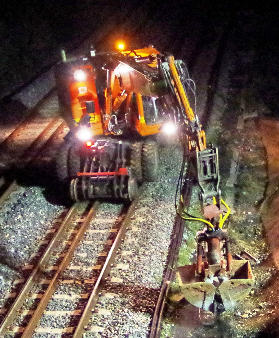 avec la présence des deux Pelles Rail route Colas Rail sur la petite base de travaux à la bifurcation de Jussy