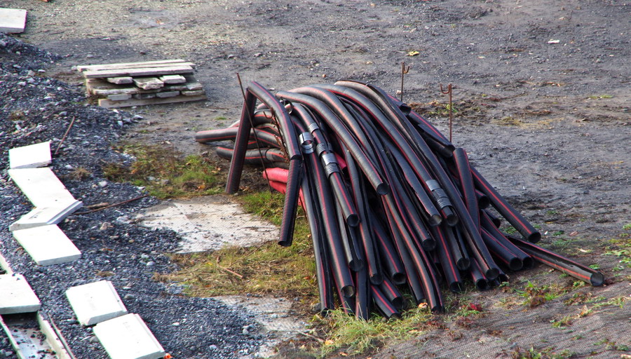 les grosses gaines noires pour les faisceaux électrique Pont de Bray à Jussy le 21-11-2018