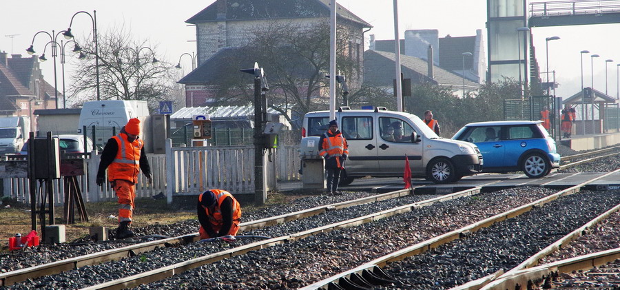 travaux d'aiguillages au niveau du PN de la gare Ham et d'Eppeville le 20-02-2019