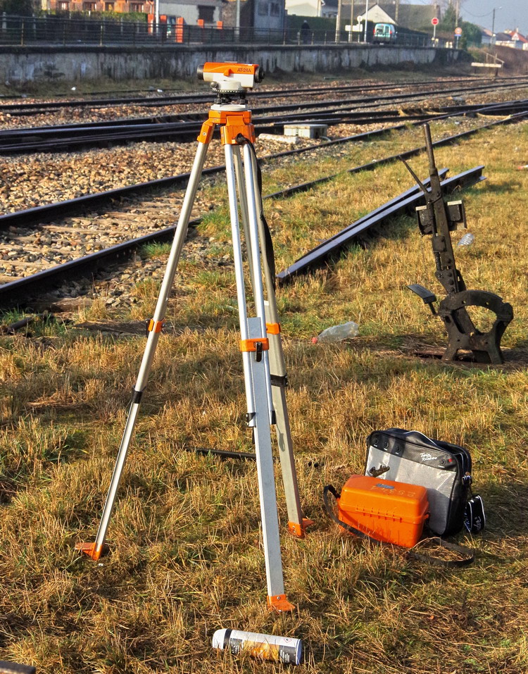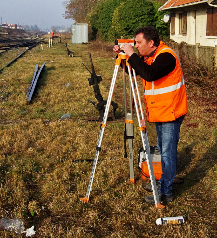 prise de mesure avec un laser et une règle Geismar RCA 1435 au niveau du PN de la gare Ham et d'Eppeville le 20-02-2019