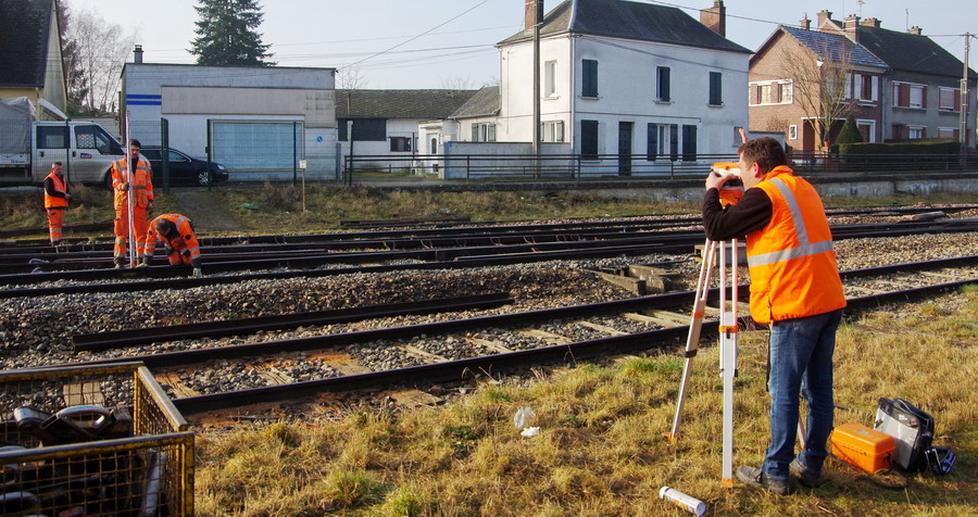 prise de mesure avec une règle Geismar RCA 1435 au niveau du PN de la gare Ham et d'Eppeville le 20 février 2019