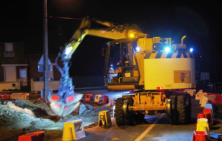 Voici la suite des travaux au PN 58 de Chauny (02) par notre reporter sur le terrain Gtr Lefèvre nuit du 16 au 17 avril 2019