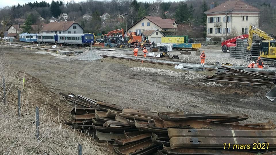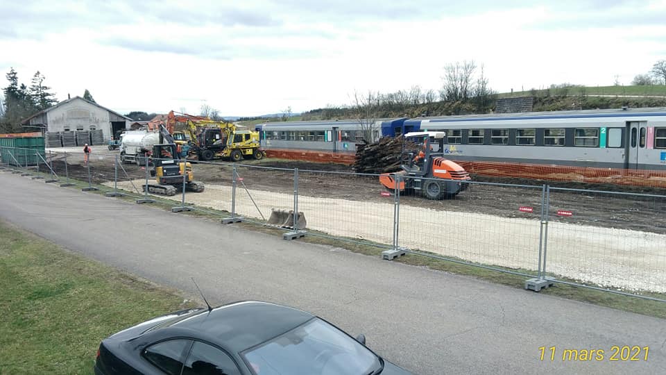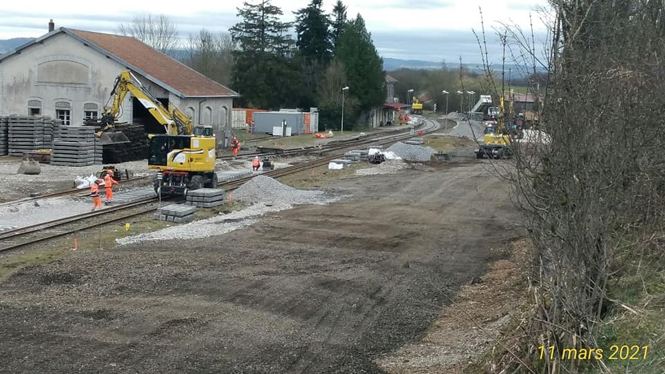 Le 10 mars , un premier train de travaux pour la ligne des Horlogers arrive de Dijon, il passe Franois.