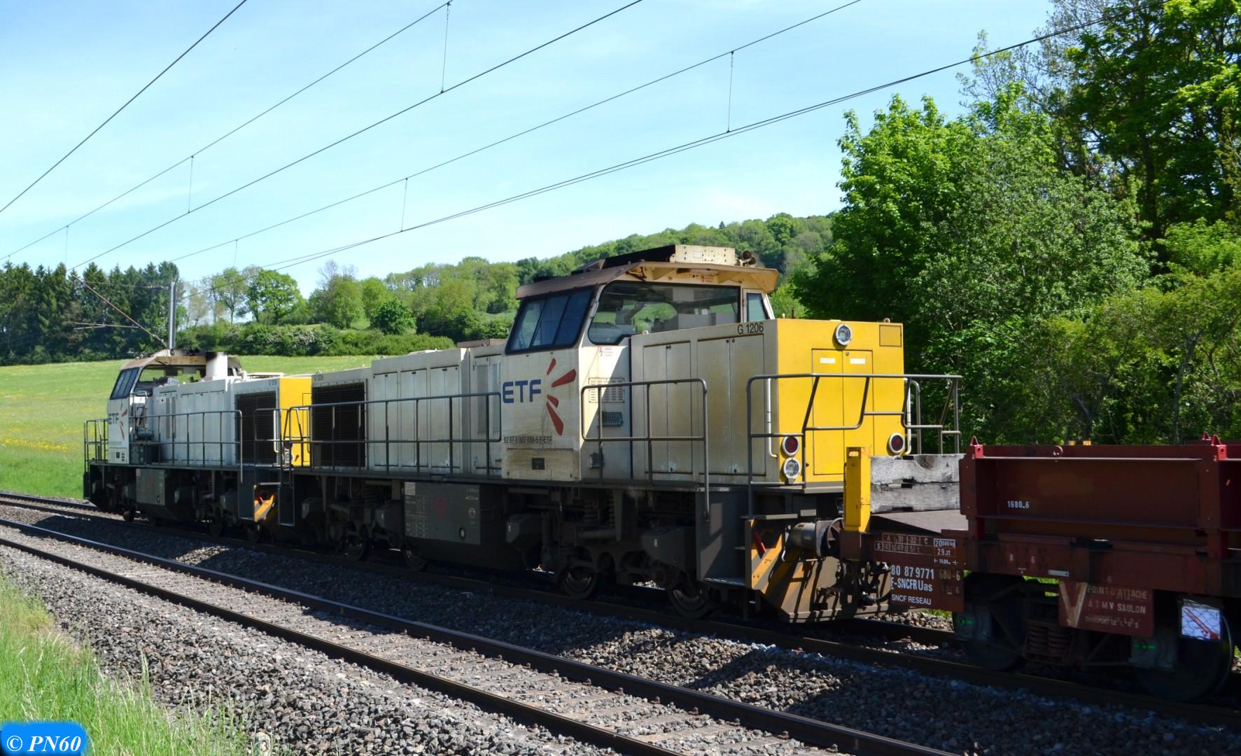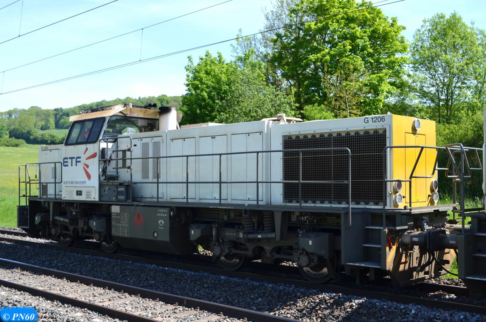 Après la V.211 99 87 9 182 514-9 d'ETF voici les 2 G.1206 d'ETF toujours en pousse du convoi.