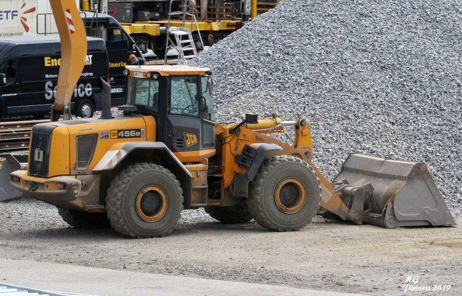 chargeur JCB 456e de Meccoli pour le chargement du ballast sur la base de travaux du Puy-Imbert le 18-07-2019