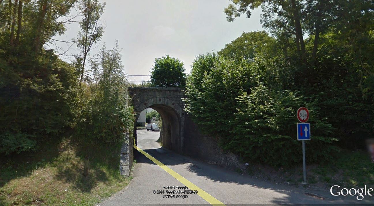 Si je peux me permettre pour vous montrer l’avant de ce chantier, voici grâce à Goggle Earth deux vue de ce passage. Juste avant ce passage, sur la gauche ce trouve la caserne des pompiers. Ces travaux élargiront ce passage.