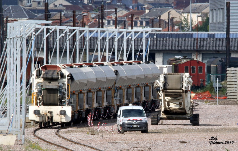 Voici quelques images des matériels utilisés pour les travaux sur la ligne POLT. Boureuse Meccoli et Suite Rapide ETF de passage à Saint-Sulpice Laurière.