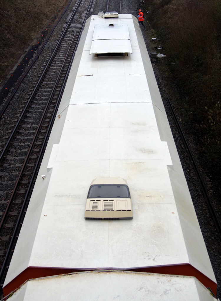 avec un personnel d'accompagnement de Ferrotract en queue de rame