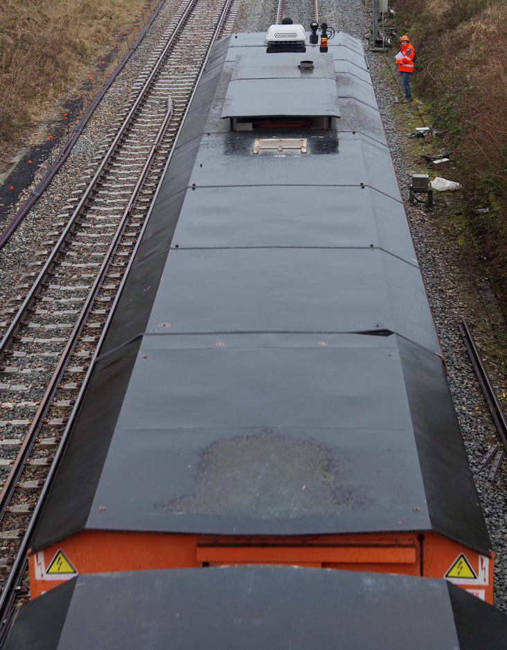 rame vide du vieux ballast sur la base de travaux de la gare de Ham le 19-02-2018