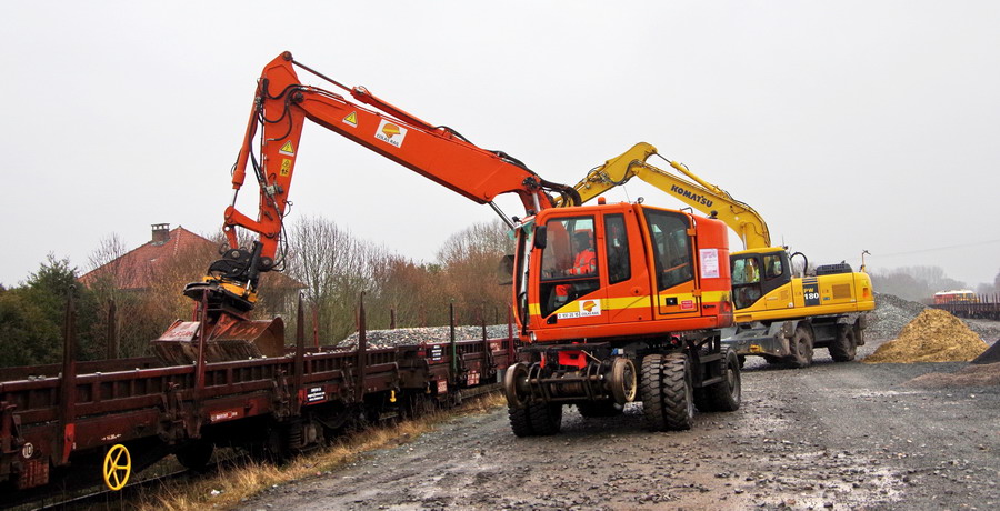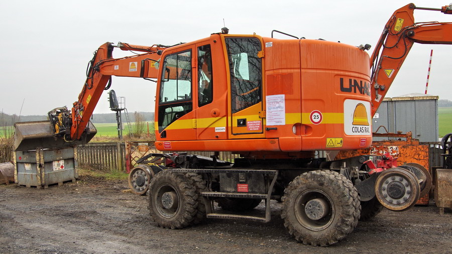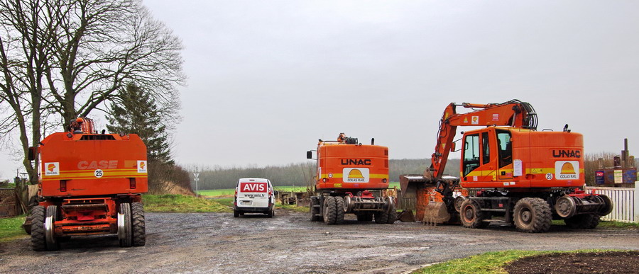 l'ensemble des trois Pelles Rail route de Colas Rail à l'ex gare de Jussy le 19-02-2018