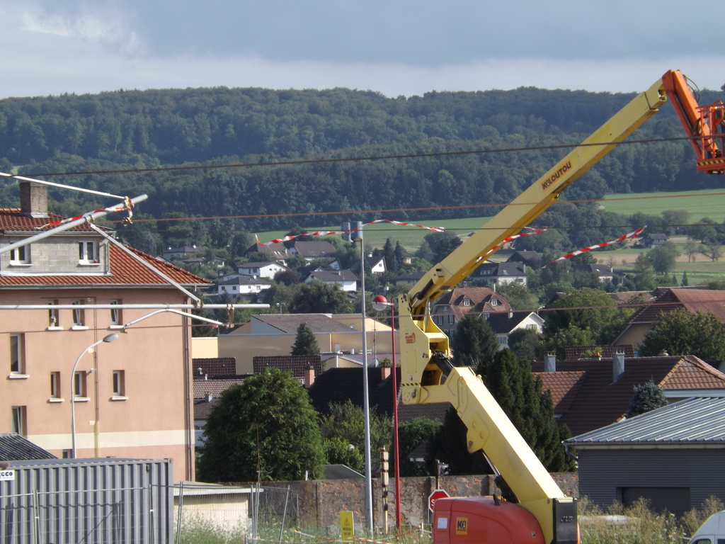 Les supports de caténaire, son en place ainsi que les lestage pour le moment en position basse.