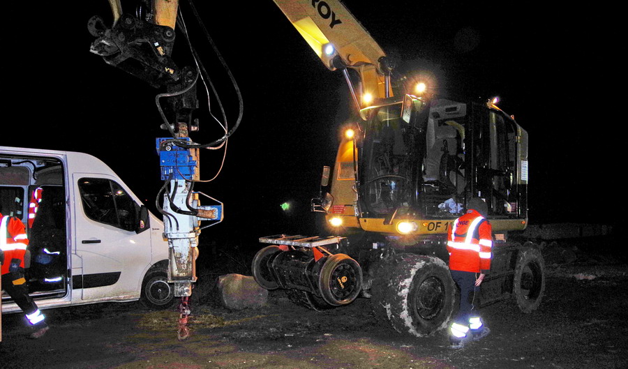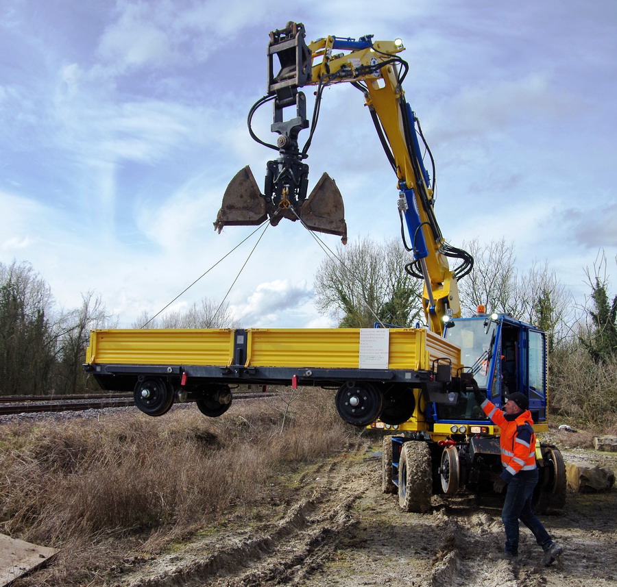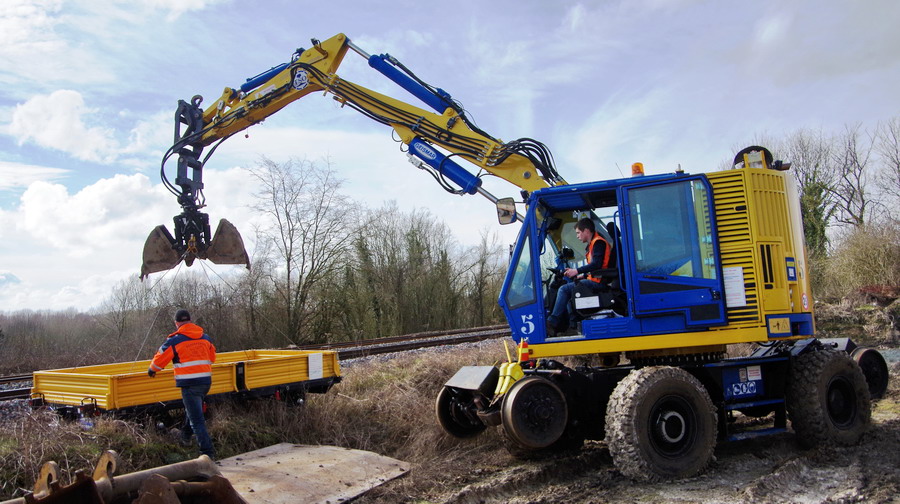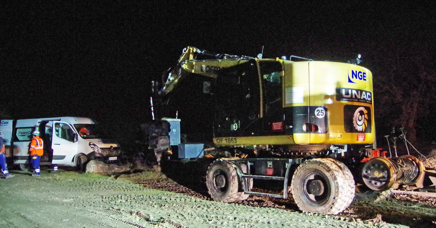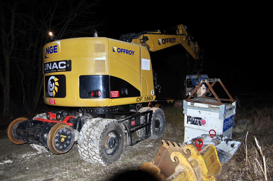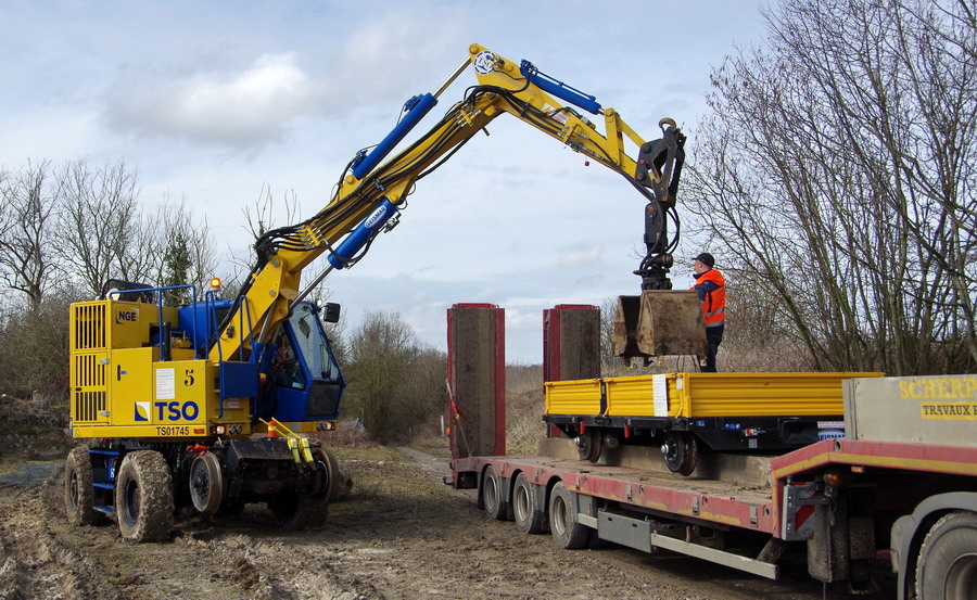 il y a deux pelles Rail route présentent pour le chantier avec les équipe de TSO et Offroy du groupe NGE