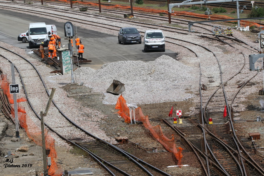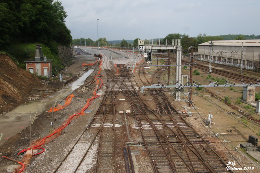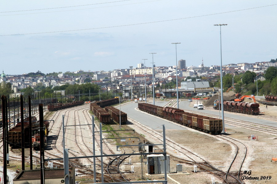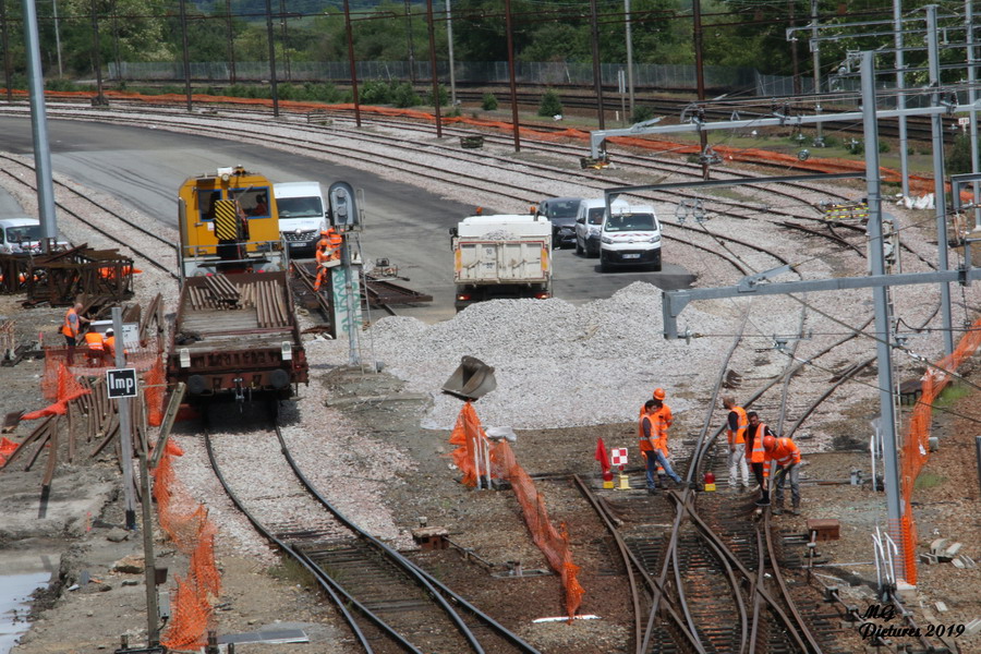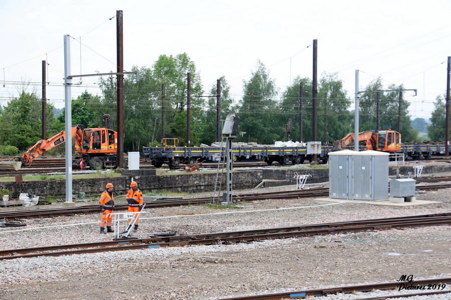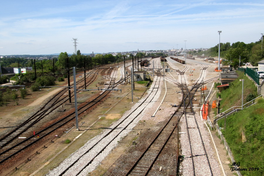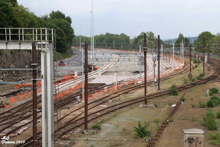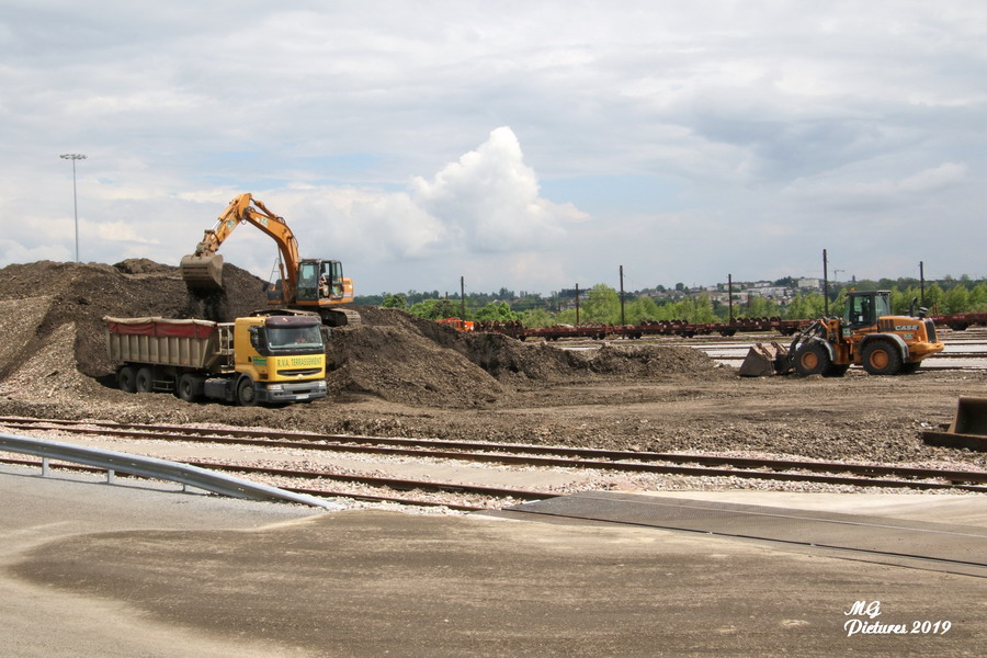 Vue des travaux sur la nouvelle base arrière de l'ex triage du Puy-Imbert le 20-05-2019