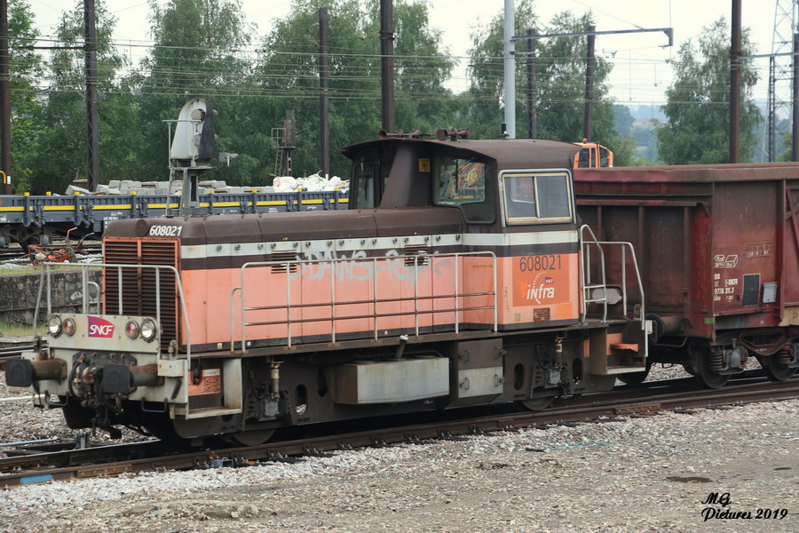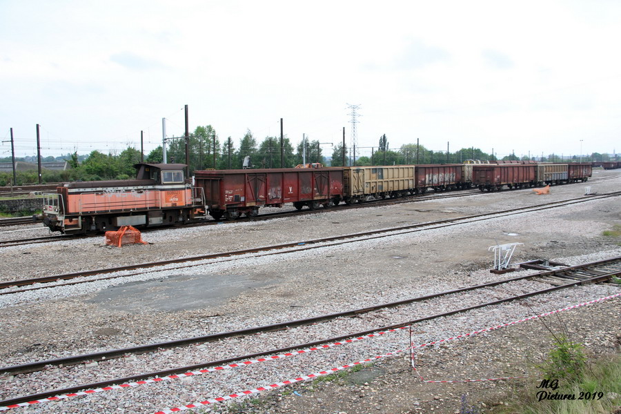 présence du locotracteur Y 608021 avec une rame de Tombereaux Puy-Imbert le 20-05-2019