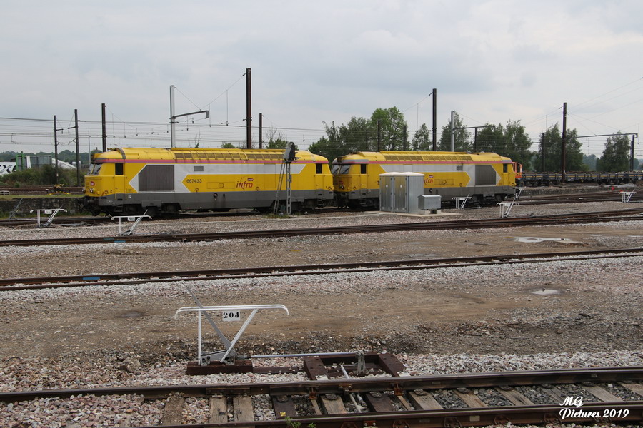 présence des BB 667433 et BB 667622 sur la nouvelle base arrière de l'ex triage du Puy-Imbert le 20-05-2019