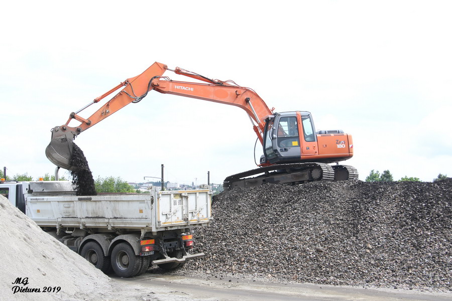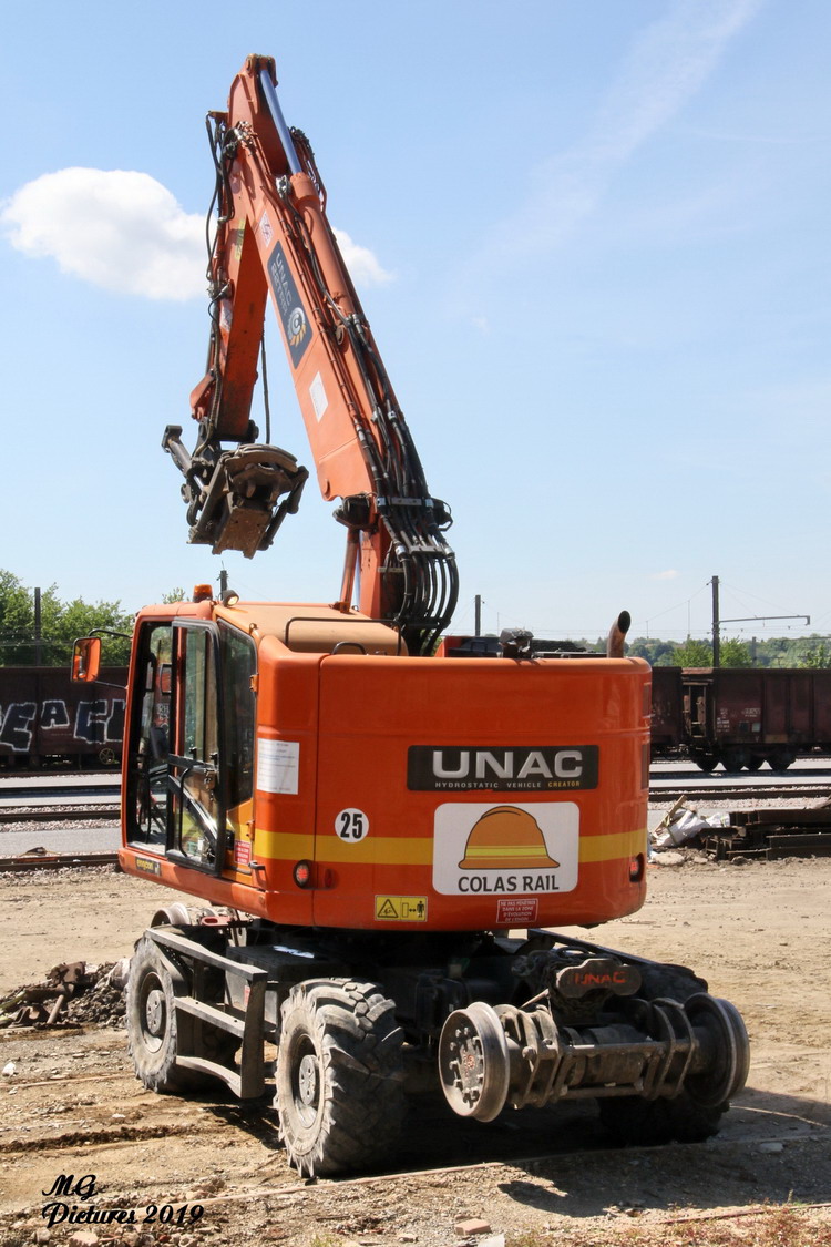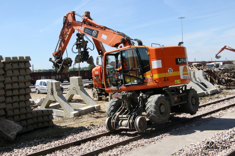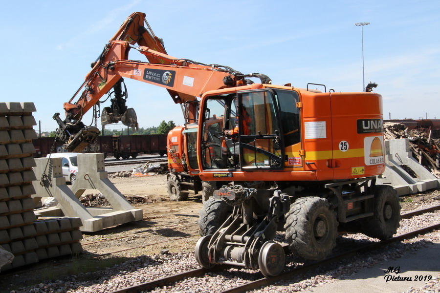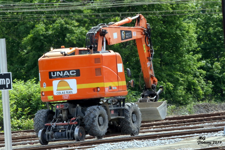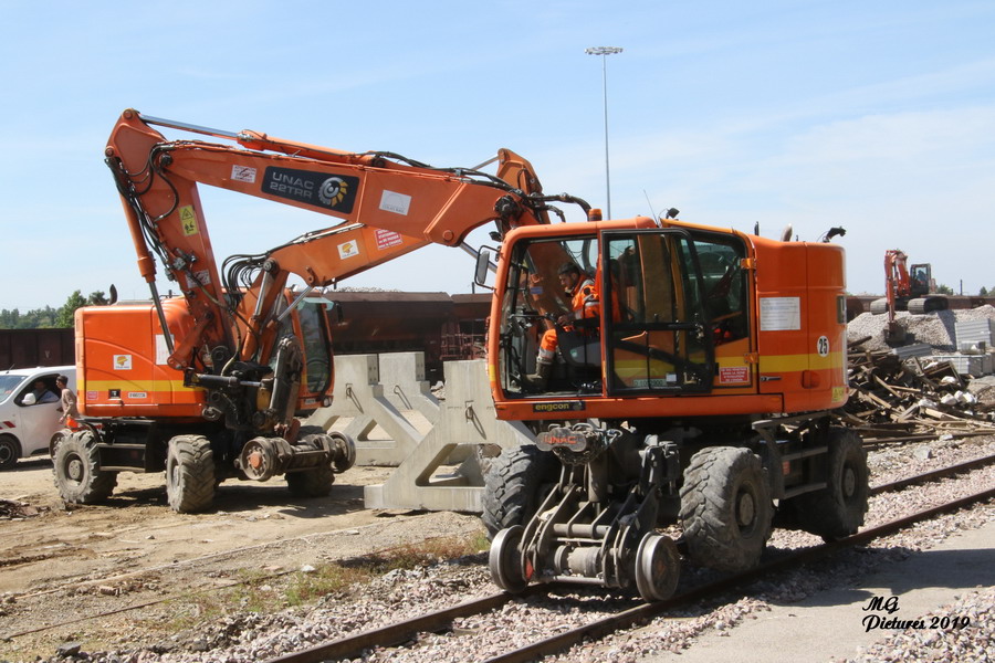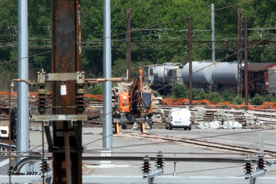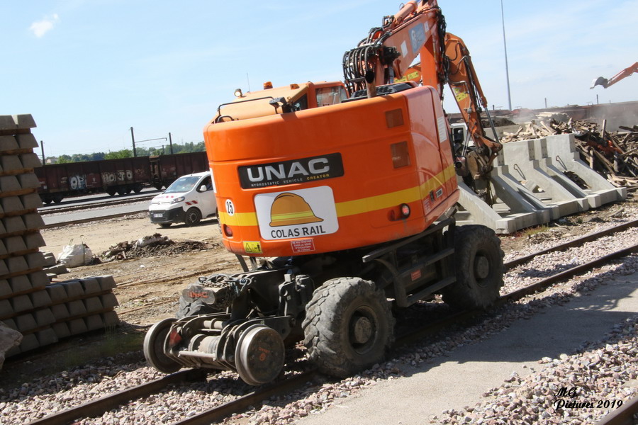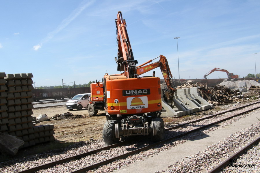 utilisation de la Pelle Rail route UNAC 22 TRR Colas Rail D1002900 sur la nouvelle base arrière du Puy-Imbert le 23-05-2019