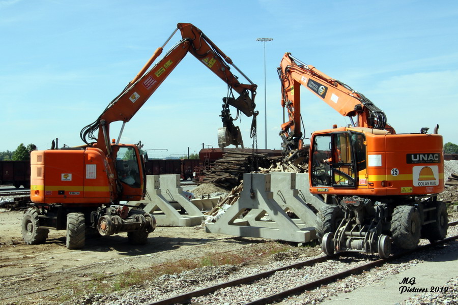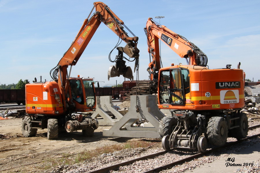 Voici la suite du reportage de Michel Guyonnaud le 23 mai 2019 avec l'utisation de deux Pelles Rail route UNAC de Colas Rail
