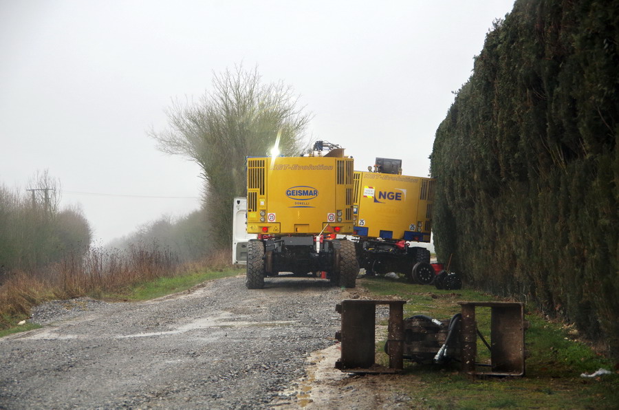 pour la préparation du chantier de pose des berlinoises, plaques de béton pour éviter les coulées de terre ou de boue