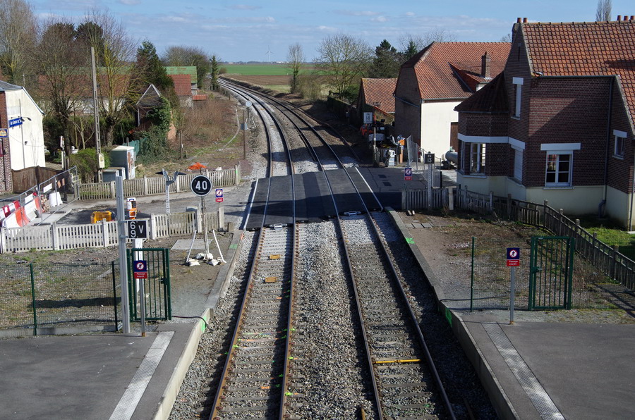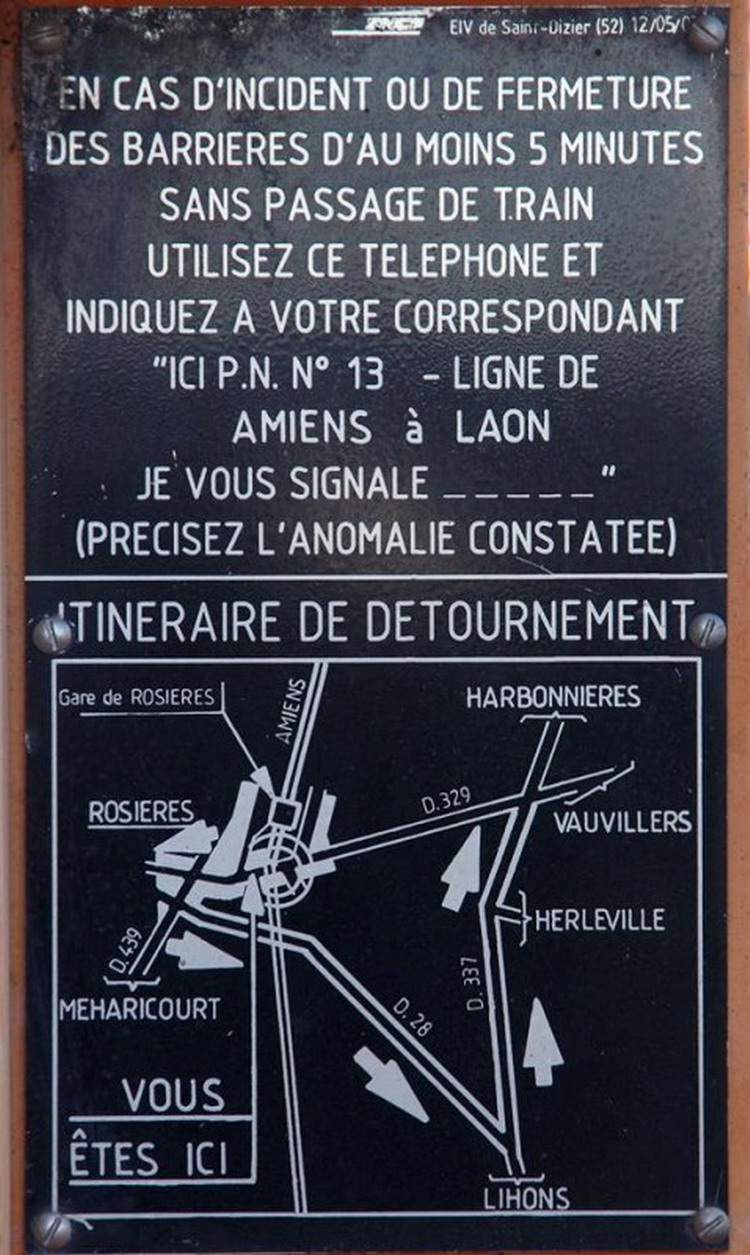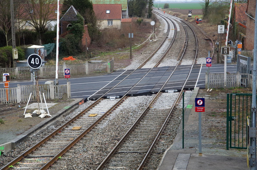 avec des photos au niveau du PN n°13 de Rosières-en-Santerre (80) PK 31,014 de la ligne Amiens Laon