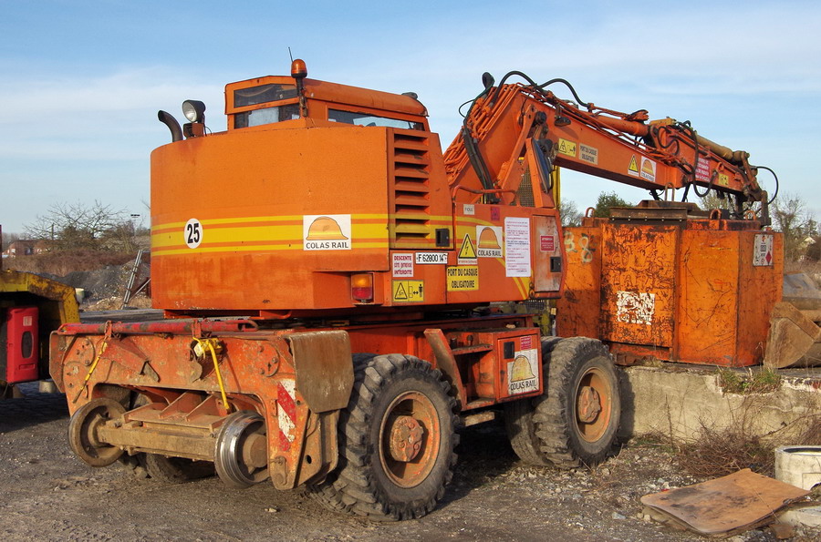 et pour finir gare Ham (80) avec la Pelle Rail route Case 688 B-PRR - CGG0122927 - Colas Rail déchargée du camion