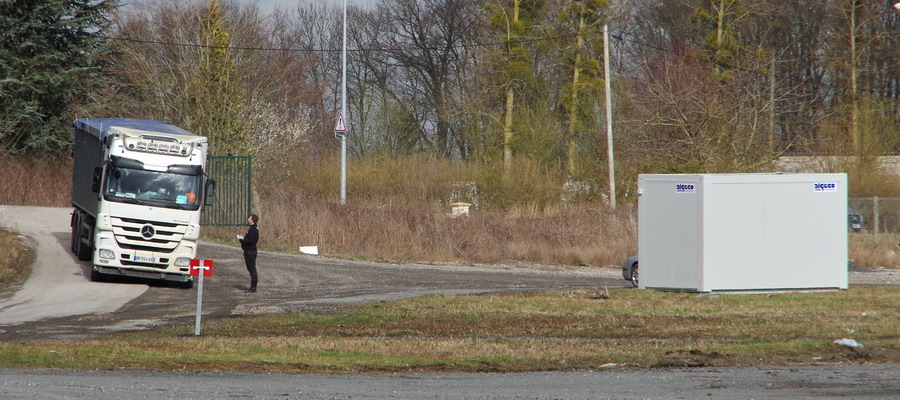 et la livraison par camion du ballast pour le stock de la base de travaux de Laon