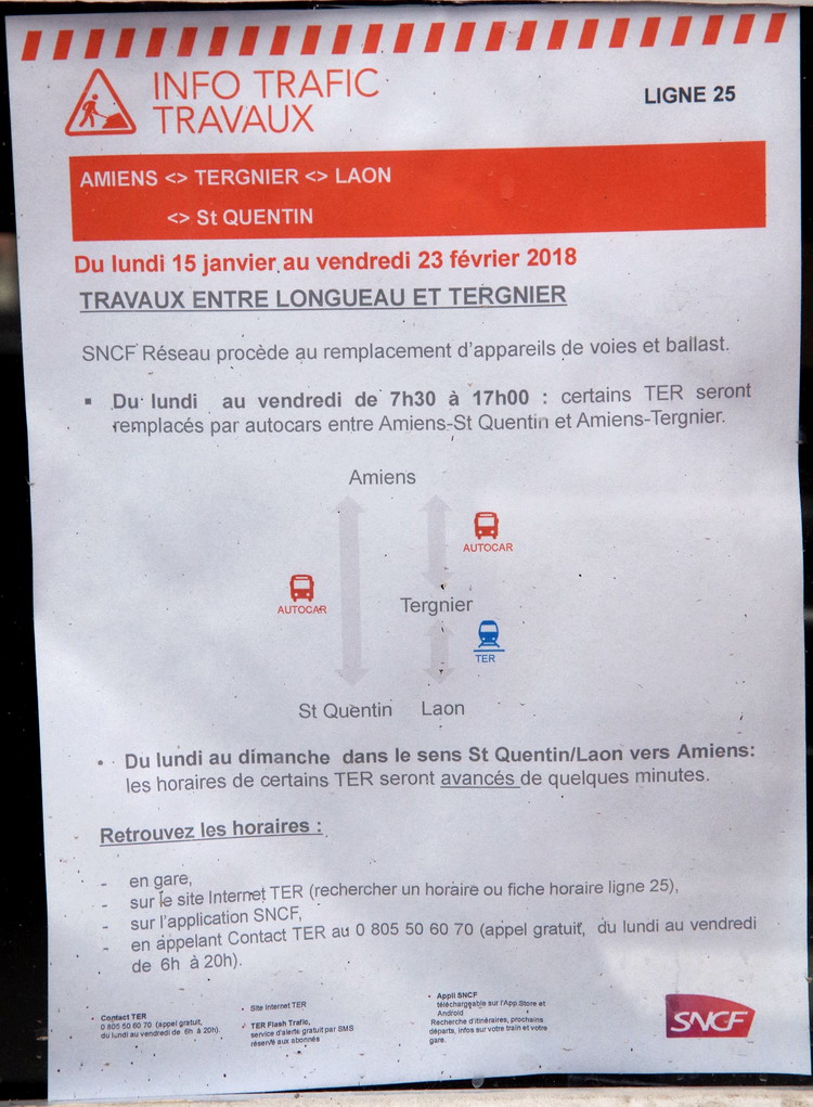 affiche des travaux en gare de Rosières-en-Santerre le 19-03-2018