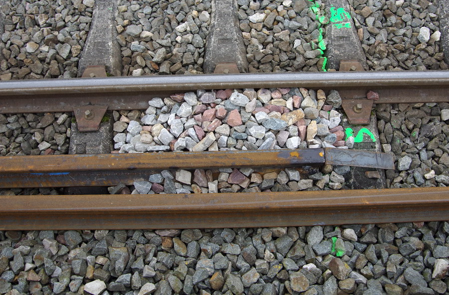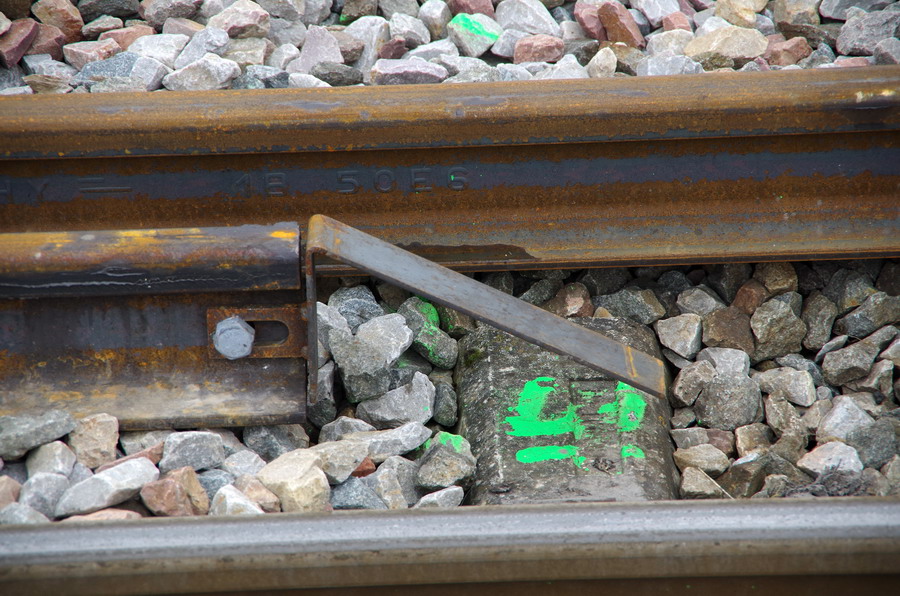 photos des éclisses et de l'équerre de blocage du fin du LRS en gare de Rosières-en Santerre
