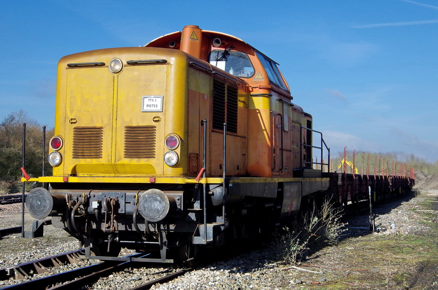 on trouve sur la base de travaux de la gare de Ham (80) un train de TTX (n°TTX 1 PISTES) avec en tête la :