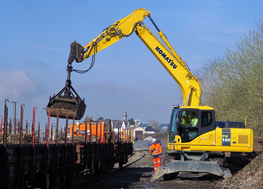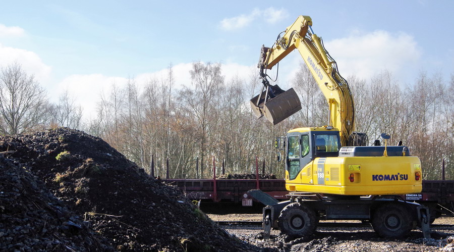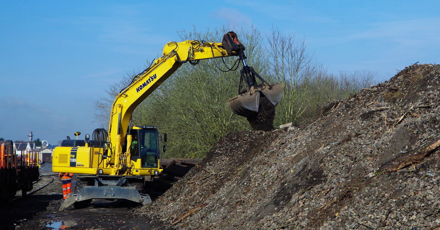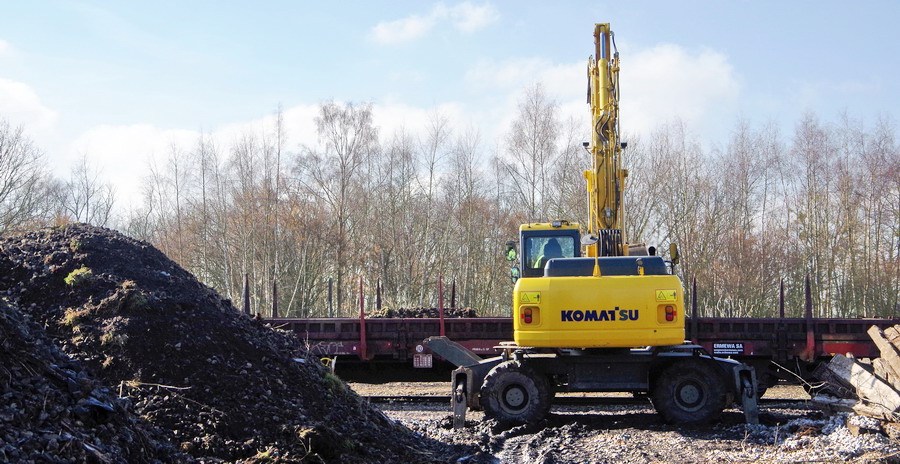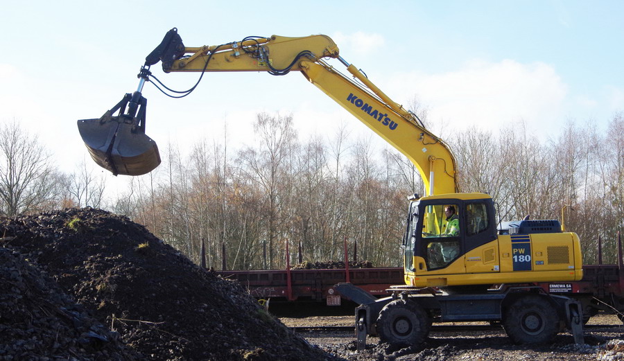déchargement des wagons par une Komat'su PW180 de location ERMEWA SA à Ham le 21-03-2018