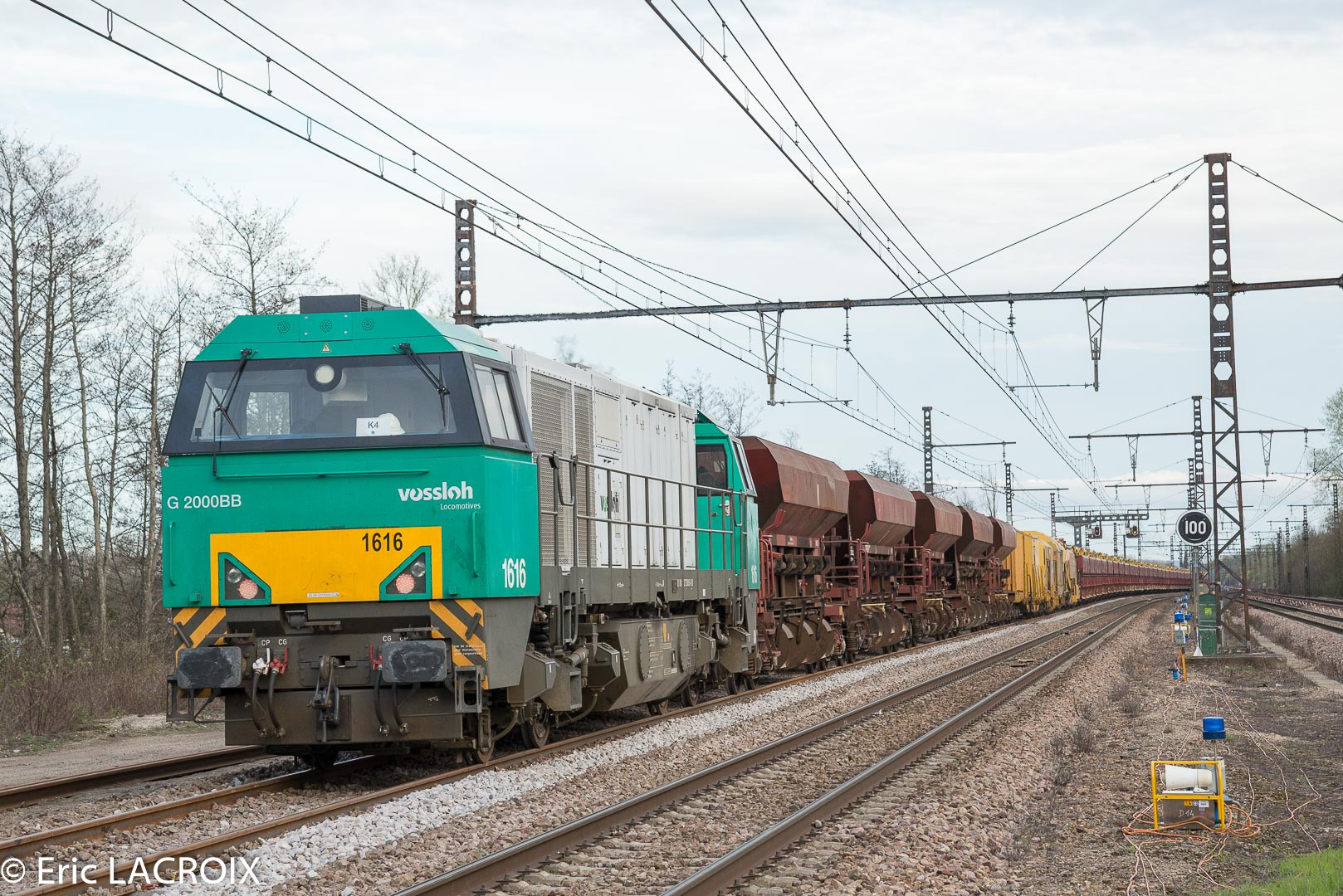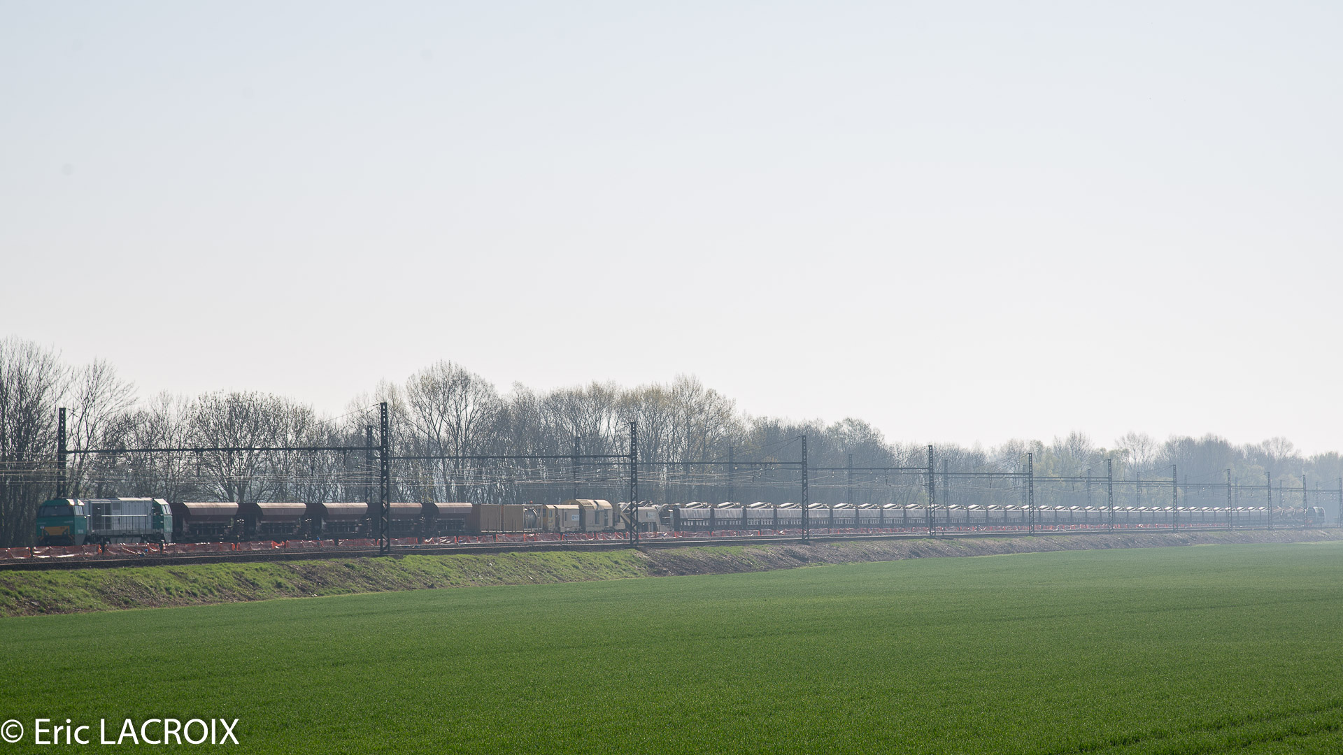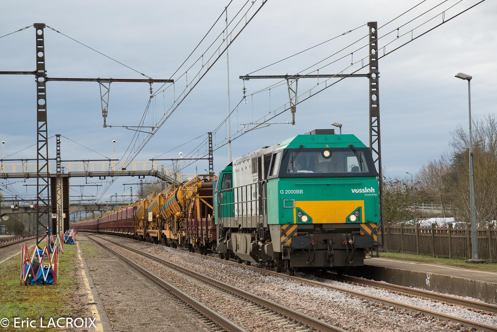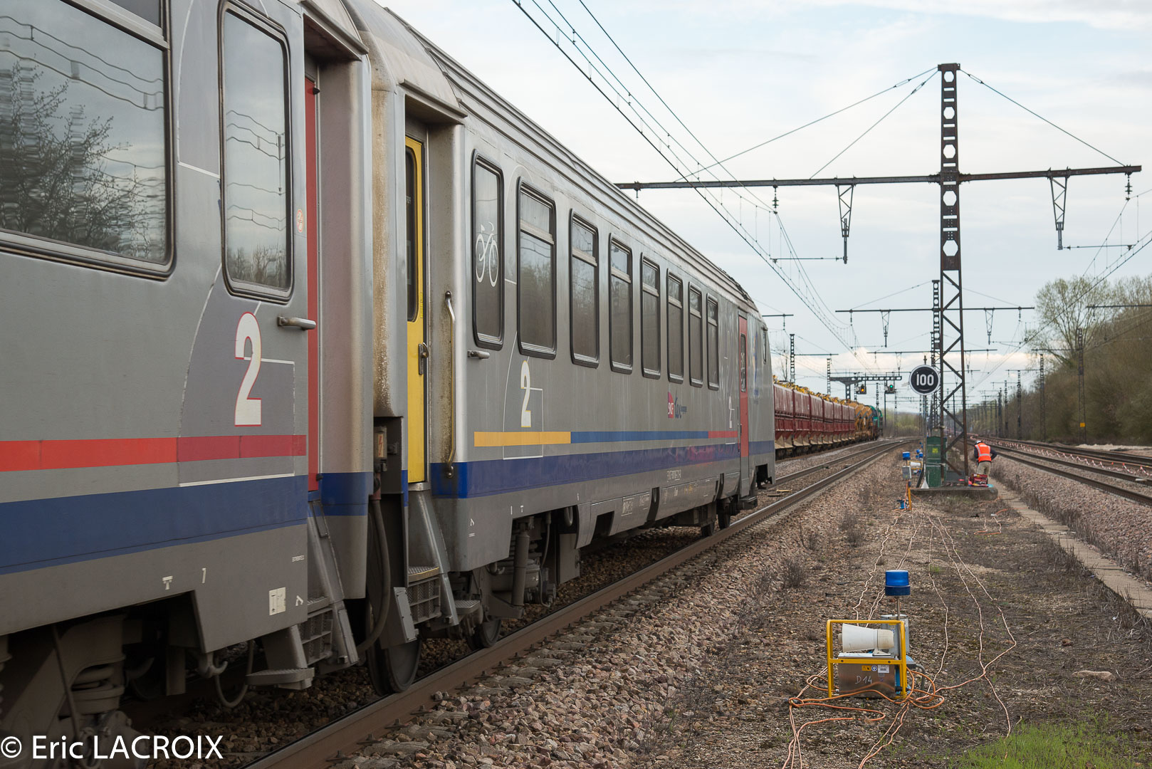 - Annonce automatique déclenchée, la E 186 330 ECR en tête d'un train complet passe à Villeneuve la Guyard (89) voie 1 en mars 2017.