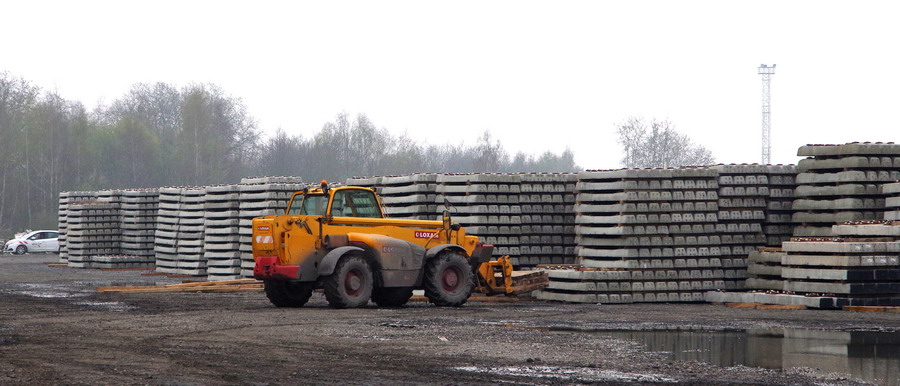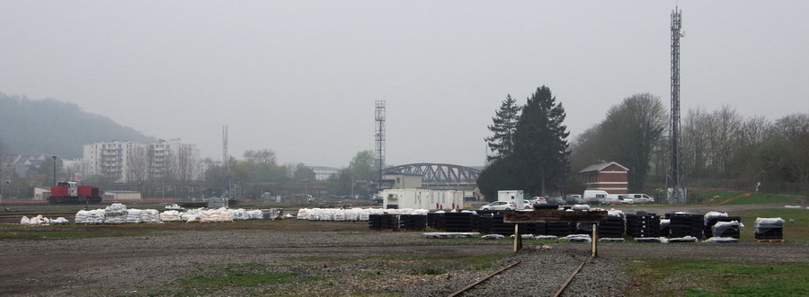 le stock de traverses béton sur la base de travaux de Laon le 09-04-2018