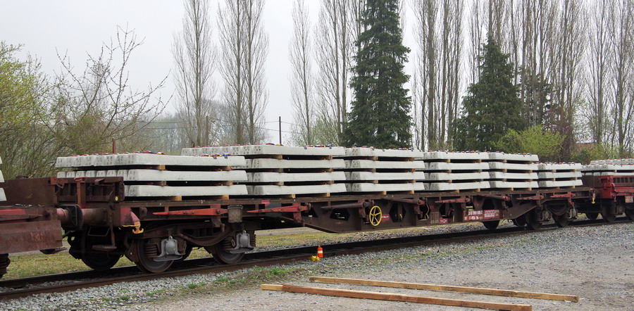 arrivée sur la base de travaux de Laon aussi le 09 avril 2018 d'une rame de traverses béton pour le stock du RVB