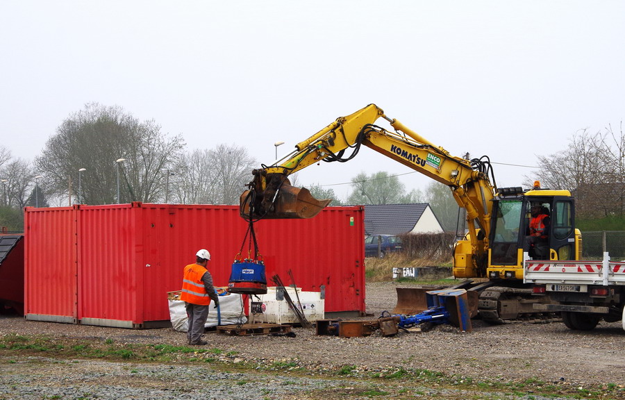 préparation de la Pelle route Komat'su PC 138 US 13 T d'ENCO sur la base de travaux de Laon le 09-04-2018