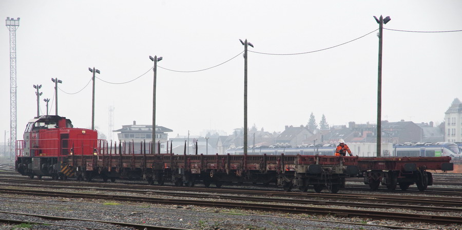 arrivée sur base de travaux ETF de la gare de Laon le 09 avril 2018 de deux wagons ETF
