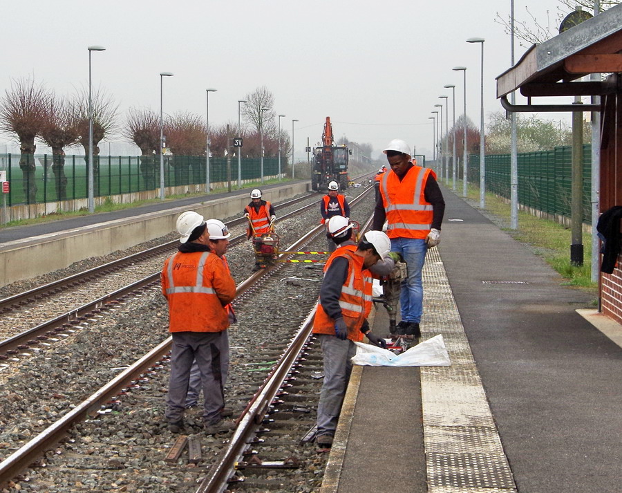 les travaux connexes par Meccoli gare de Flavy-le-Martel le 09-04-2018