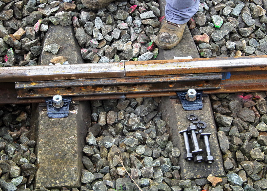 avec du boulonnage de traverses béton et du soudage aluminothermique