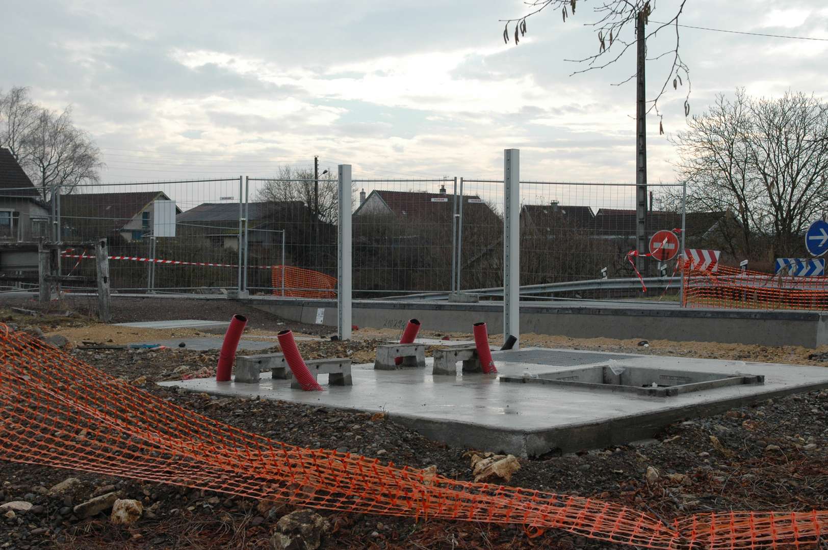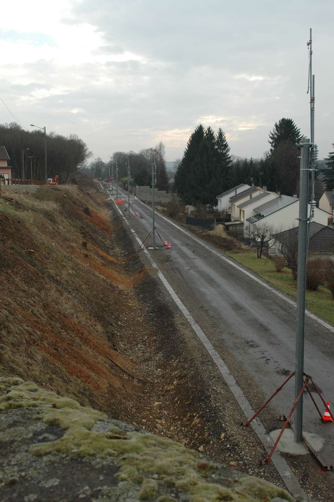 Les poteaux de caténaire sont arrivé quasiment à la limite entre Danjoutin et Andelnans.