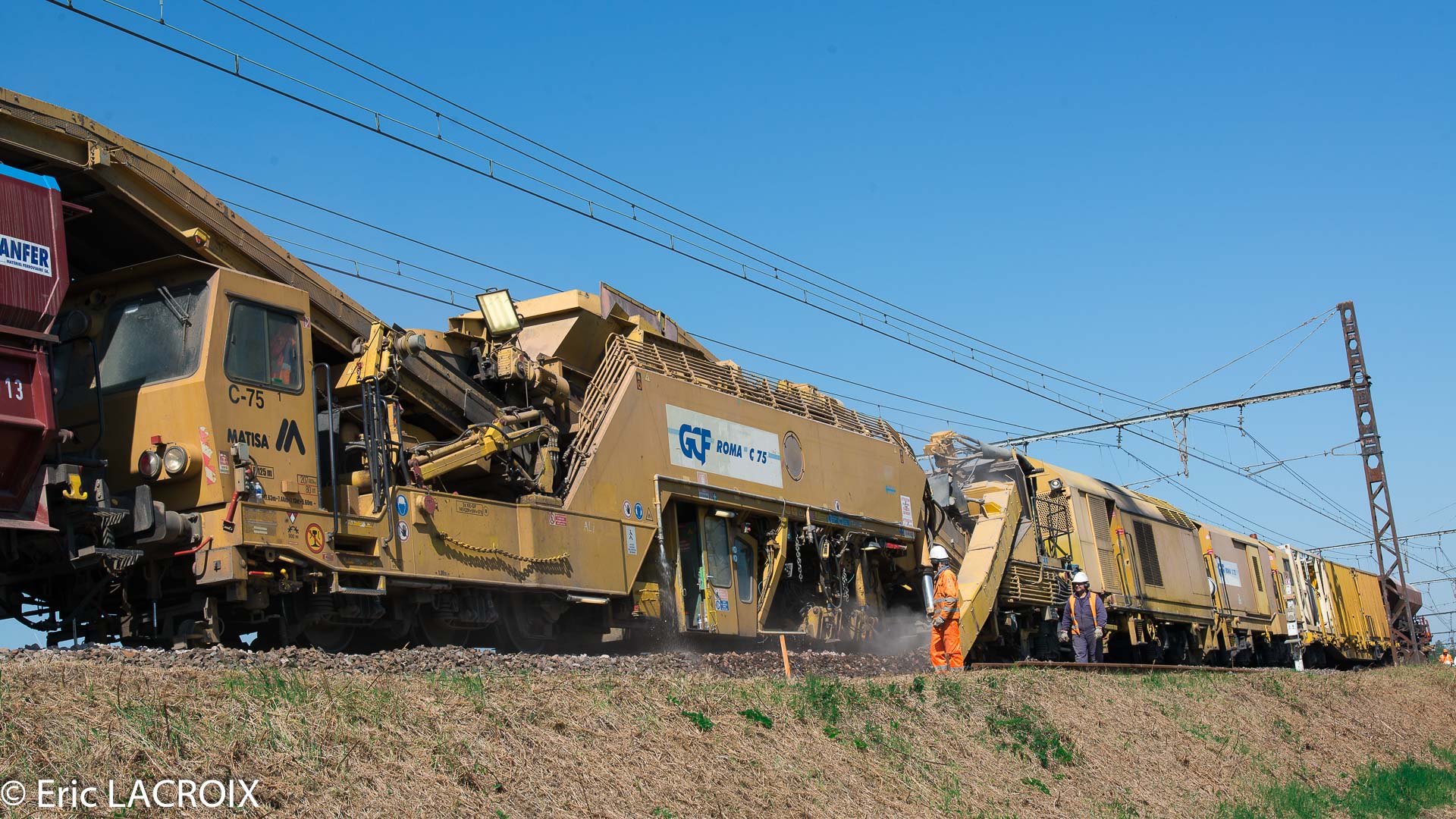 - Dégarnisseuse Cribleuse Matisa C-75 - 99 87 9 314 507-4 GCF Roma sur le RVB voie 1 bis à Courtois sur Yonne (89) en avril 2017.
