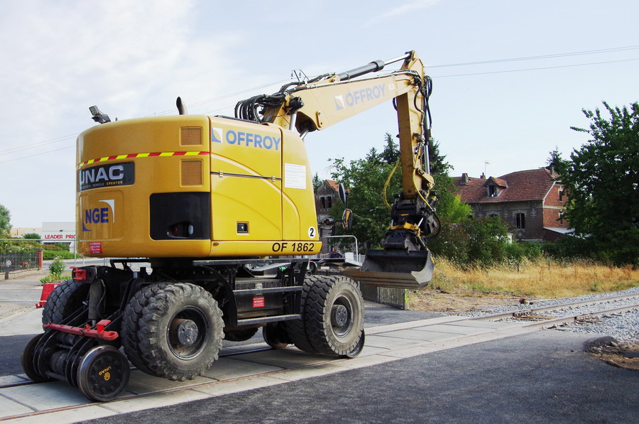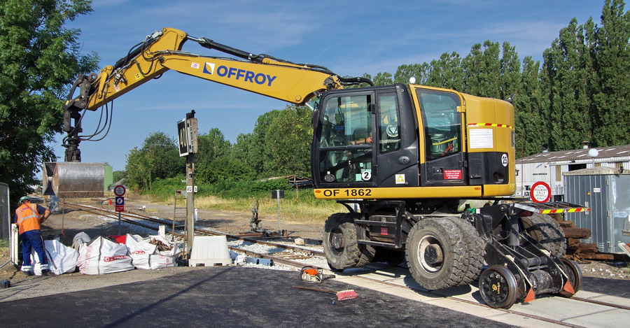 la Pelle Rail route Unac 22 TRR n°H9A0143 Offroy 2 OF 1862 pour une fin de travail sur le PN n°92 de Marle-sur-Serre le 27-07-2018