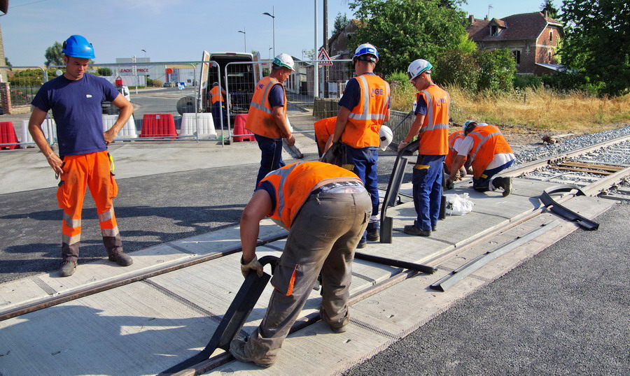 mise en place des novelles traverses bi bloc pour la nouvelle voie au niveau du PN n°92 en gare de Marle-sur-Serre
