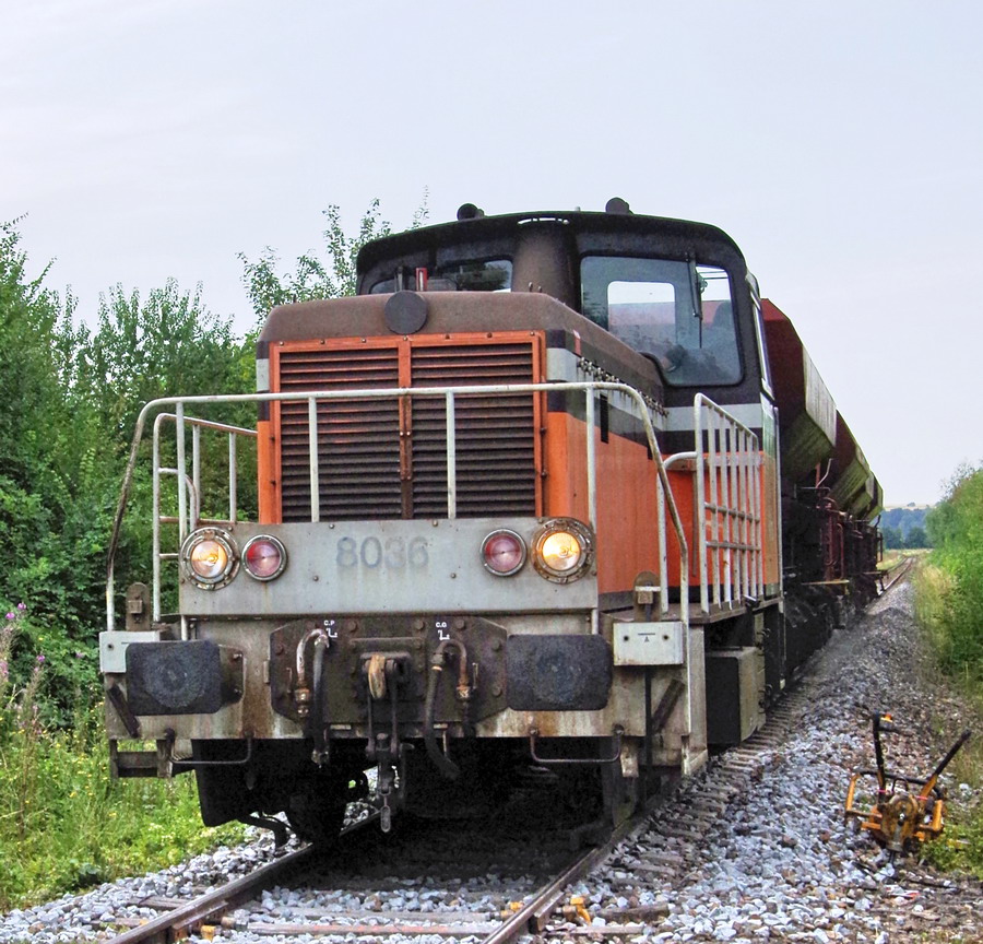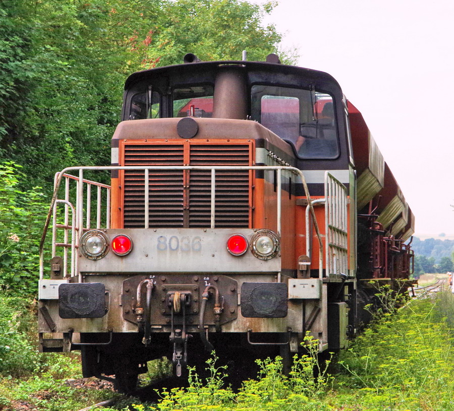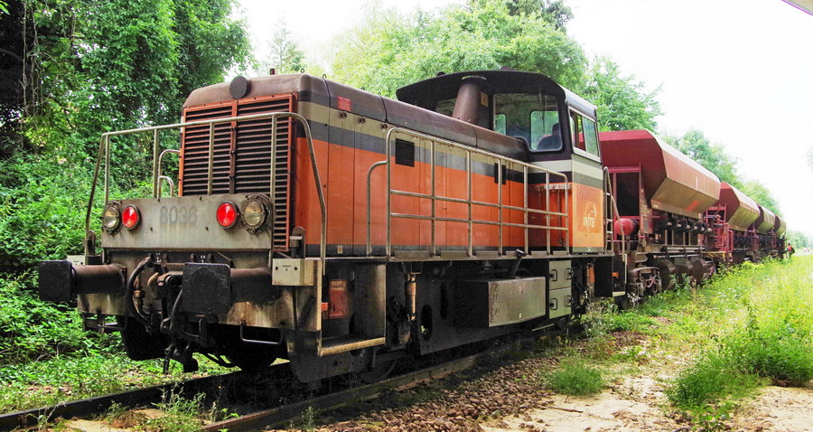 et d'une rame de TTX avec le locotracteur Y 8038 de l'Infra avec quatre wagons Trémies D12