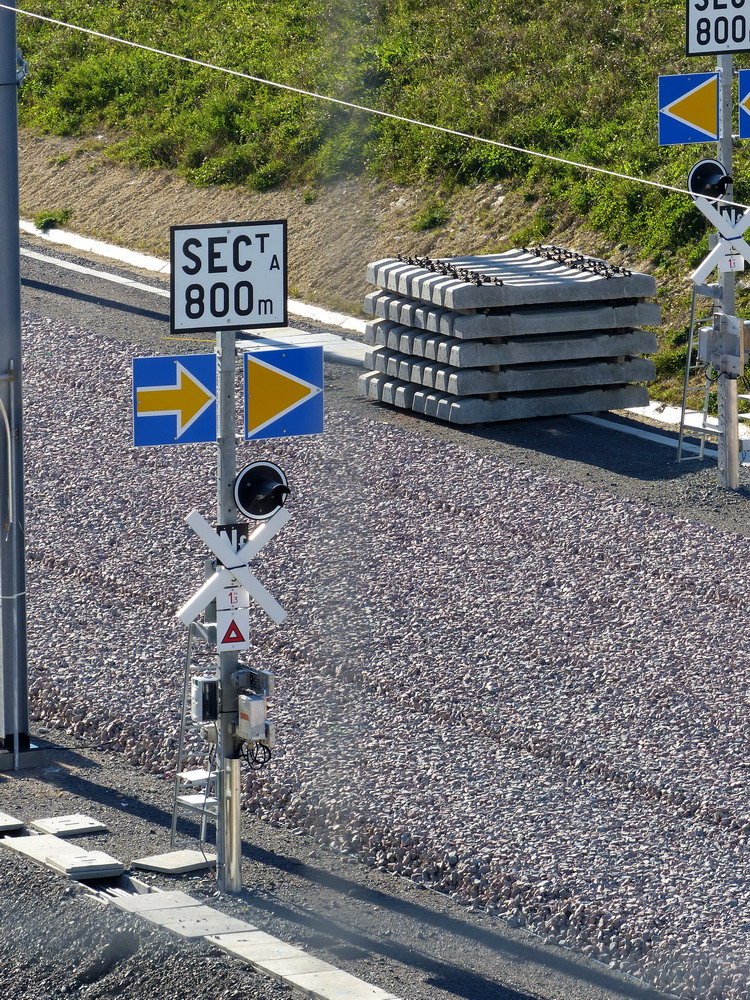 et panneau (SEC T A 800m) qui annonce un sectionnement électrique pour changement de phase sous 25KV à 800 m