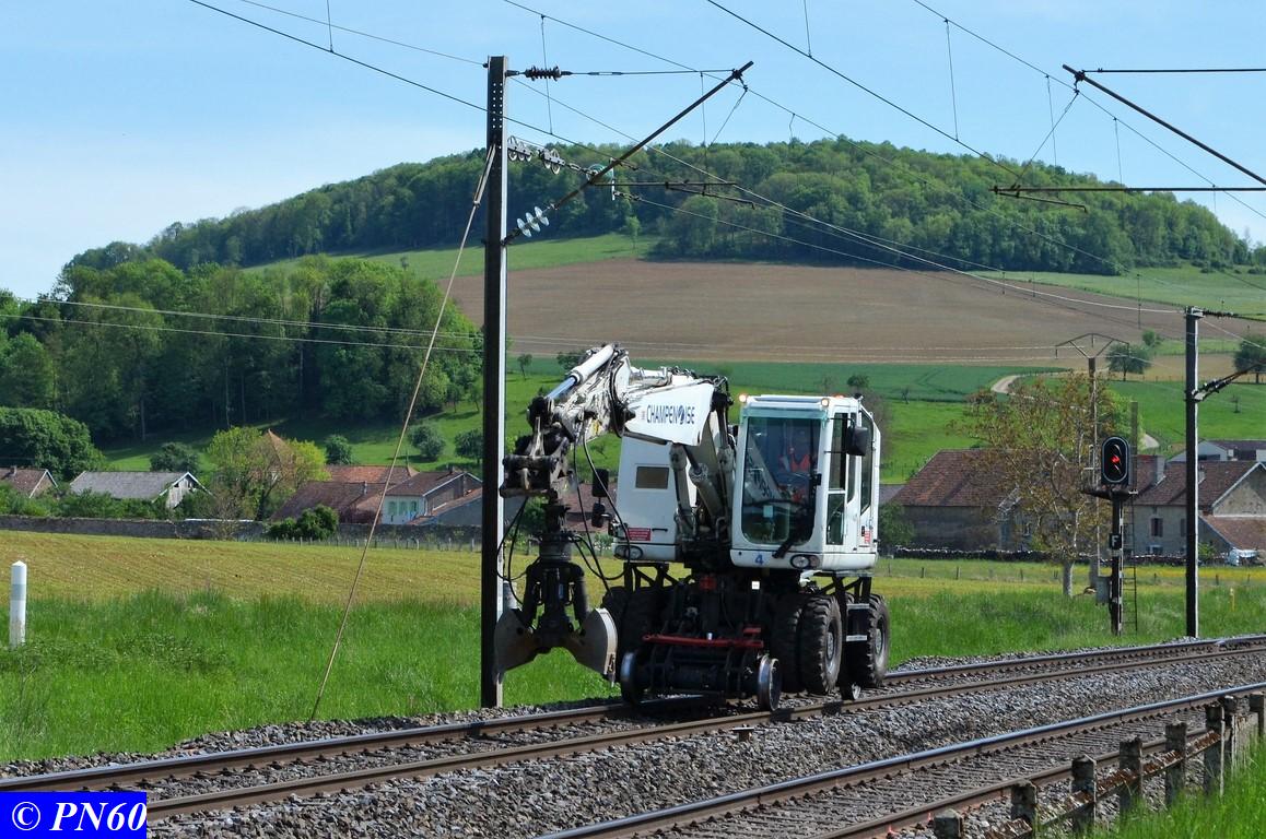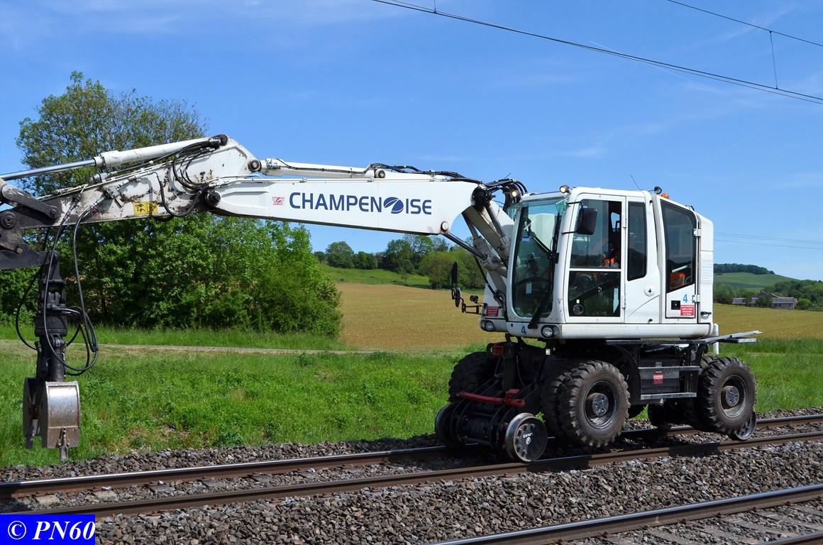 Pour terminer le reportage du 22 mai dernier, voici une pelleteuse rail-route de la société La Champenoise dont j'ignore la marque et le type, ce matériel semble assez récent !