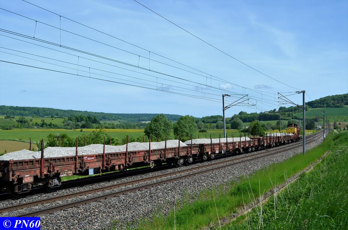 Suite du train de travaux tracté par la V212 GENIFER n° 87 9 182 586-7 le 22 mai dernier.