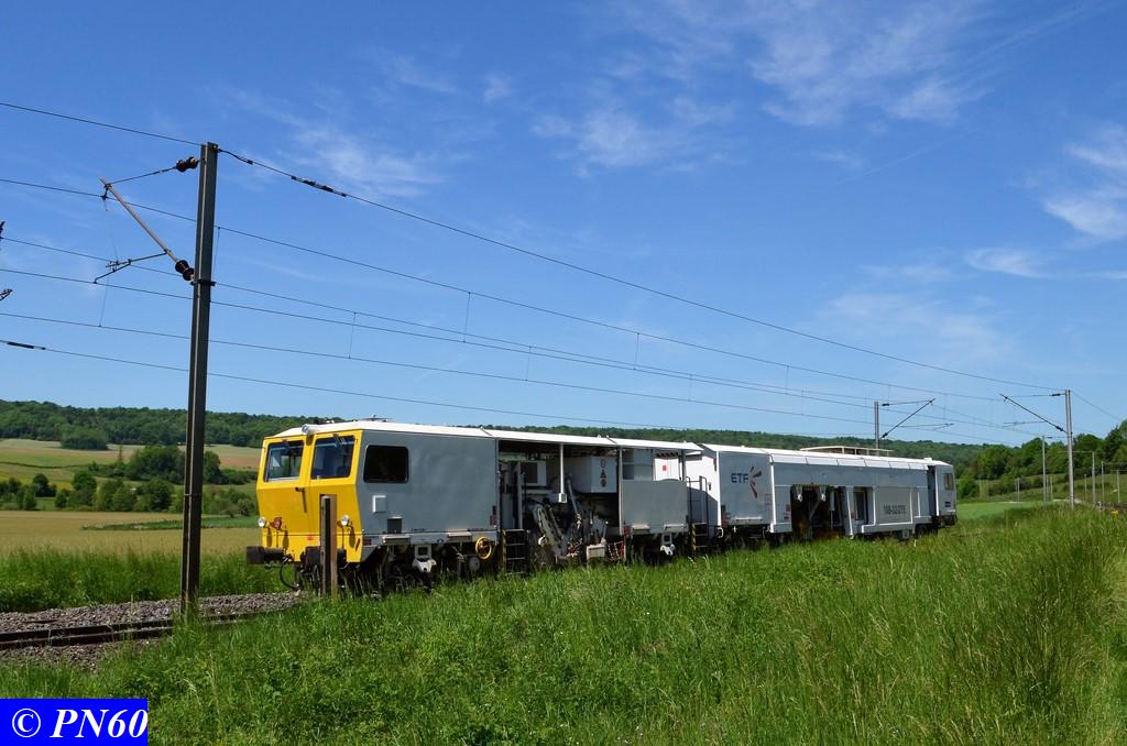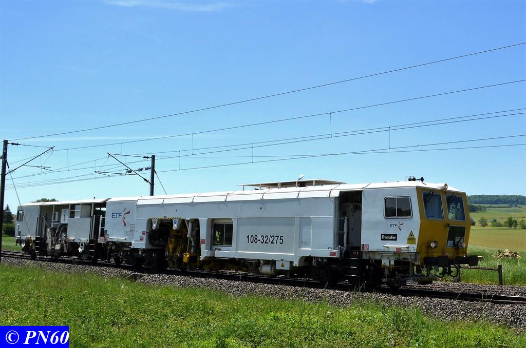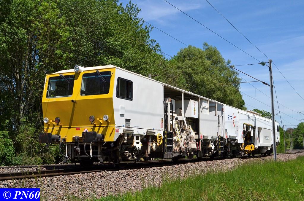 Le 25 mai 2017, vu à Brainville sur Meuse, une bourreuse-niveleuse-dresseuse de voie courante et d'appareil de voie 108-32/275 de la société ETF.