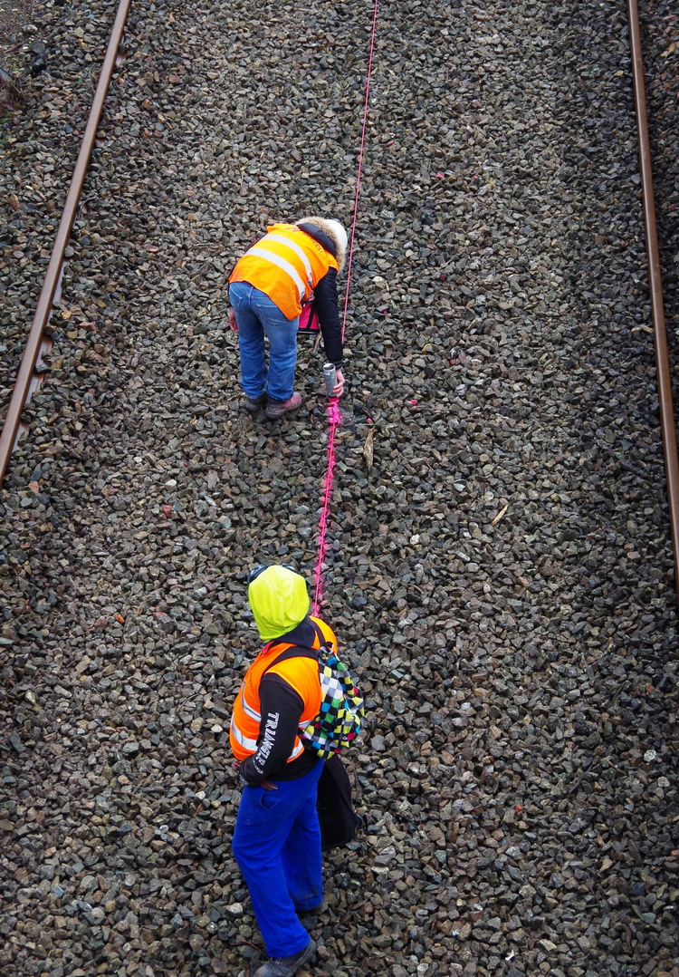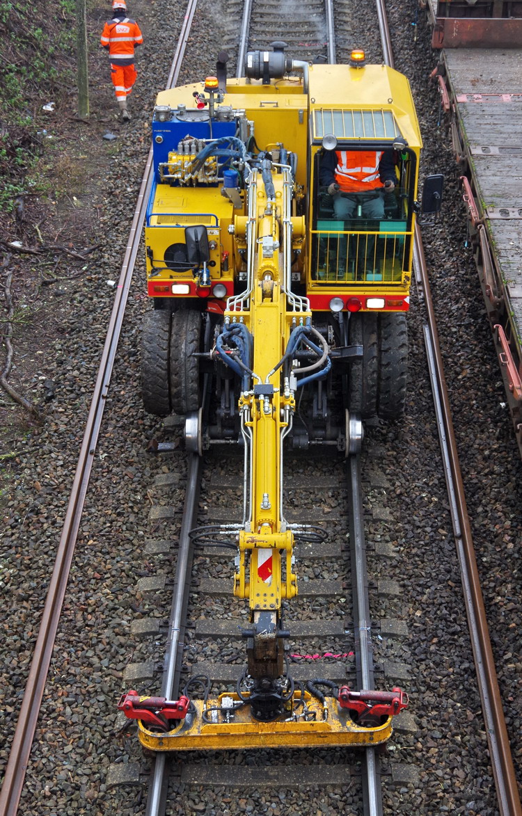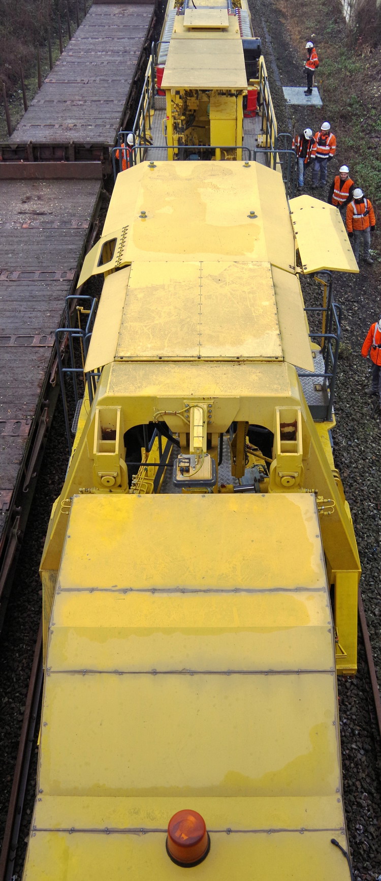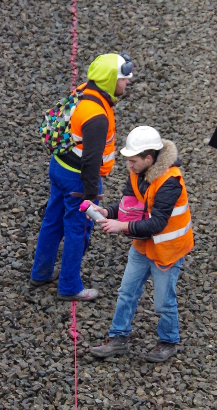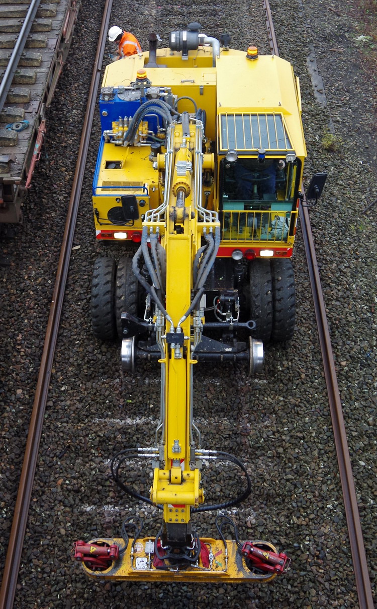 fin de la découpe d'un tronçon de rail avec le système de l'oxycoupage