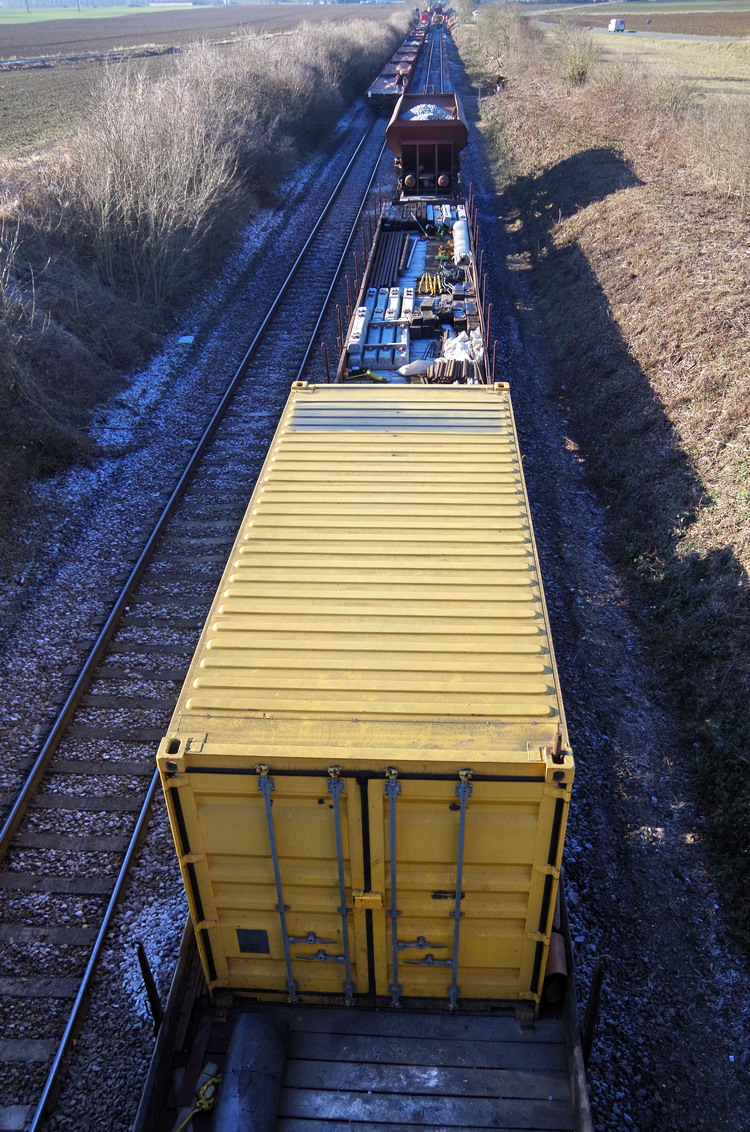 Wagon plat - 99 87 9 383 628-4 K50 Meccoli (avec container jaune Meccoli)